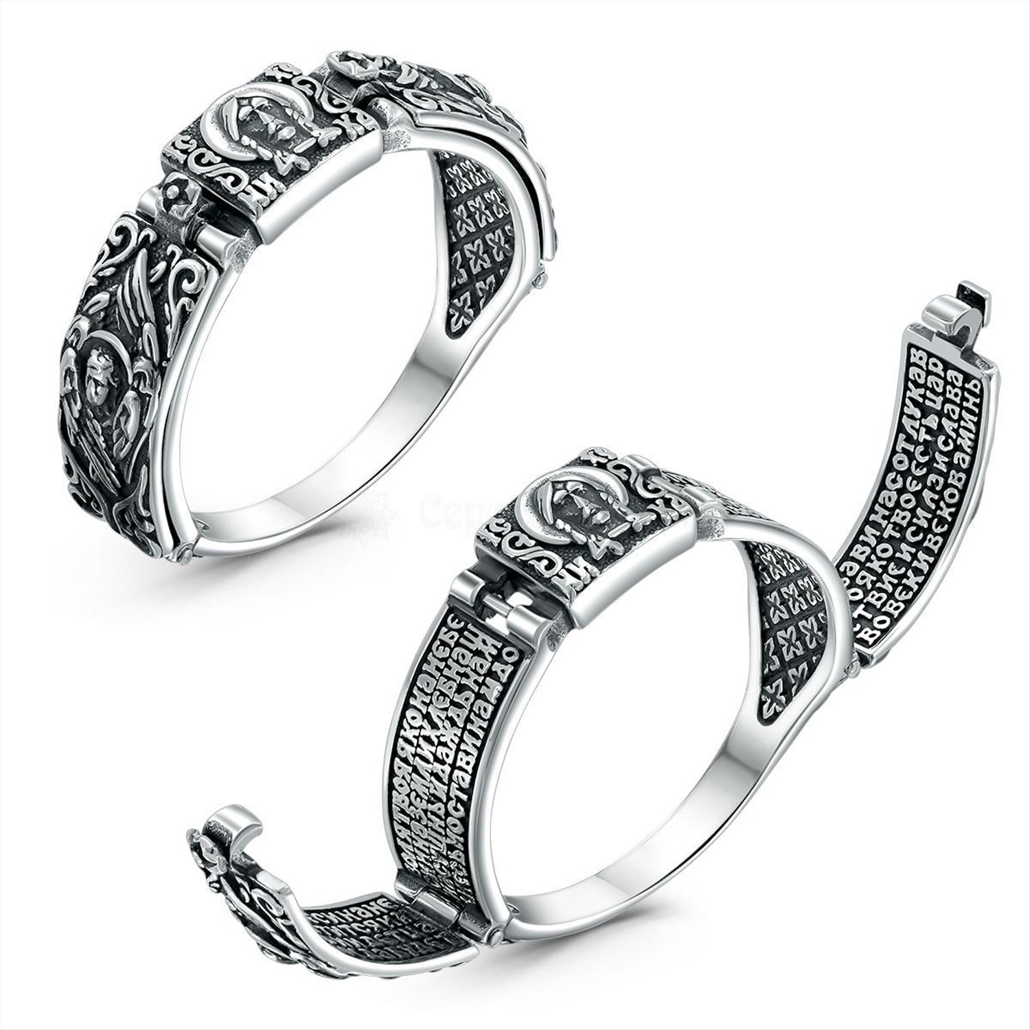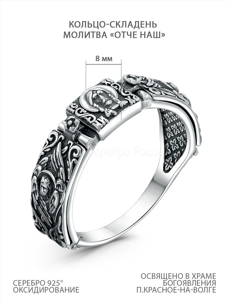 Кольцо-складень из чернёного серебра - Отче наш 925 пробы 1-196чч