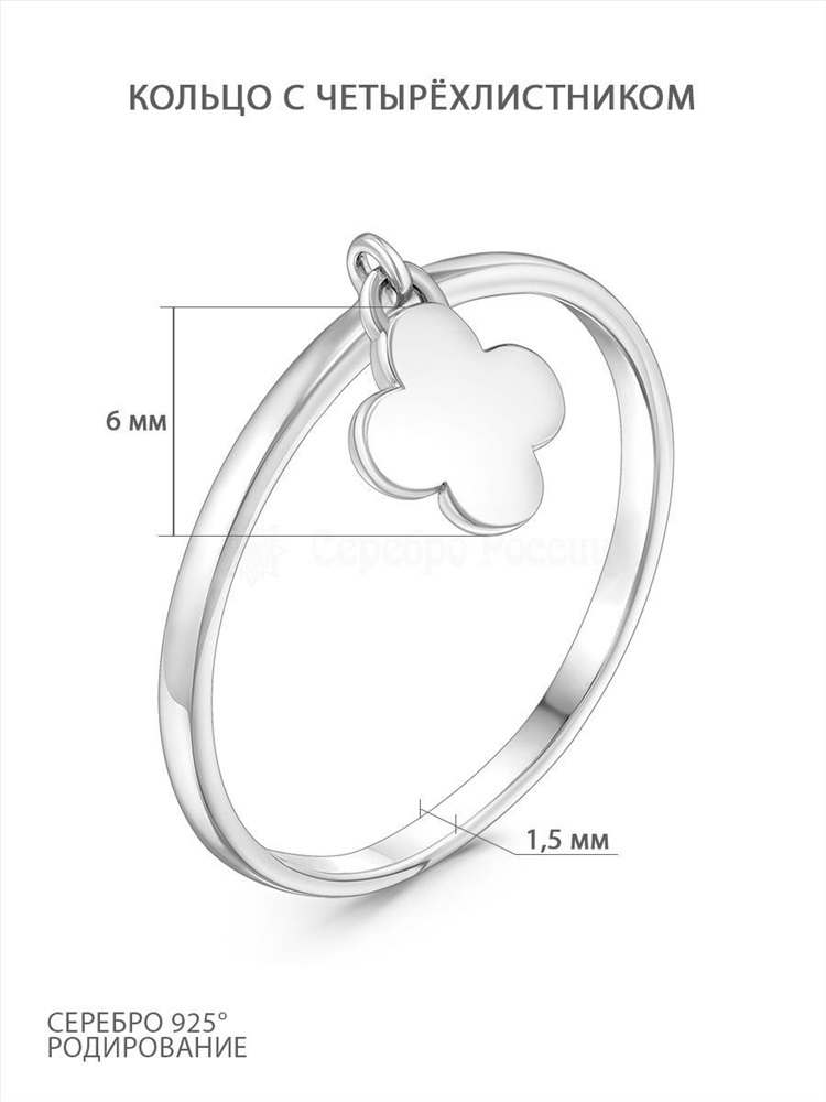 Кольцо женское из серебра родированное - Четырёхлистник 925 пробы К020
