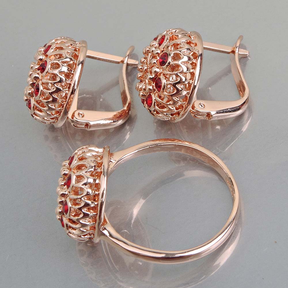 Кольцо/Серьги с золотым покрытием 18K 1 мкр с цирконами (фианитами)