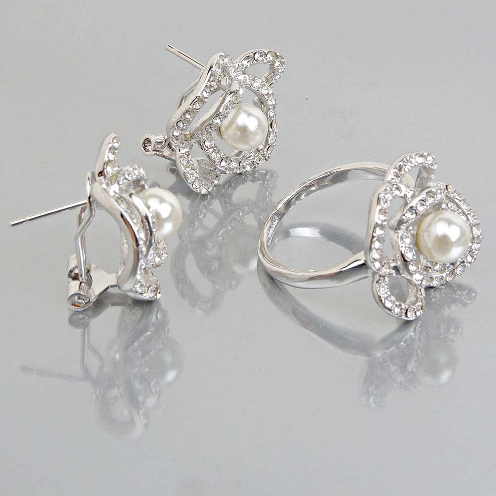 Металл: Родиевое покрытие Материал: Ювелирный сплав Вставка: Стразы Производство: Китай Количество: шт Кольцо/Серьги с родиевым покрытием со стразами