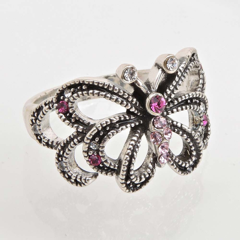 Кольцо/Серьги с гальваническим покрытием под серебро со стразами