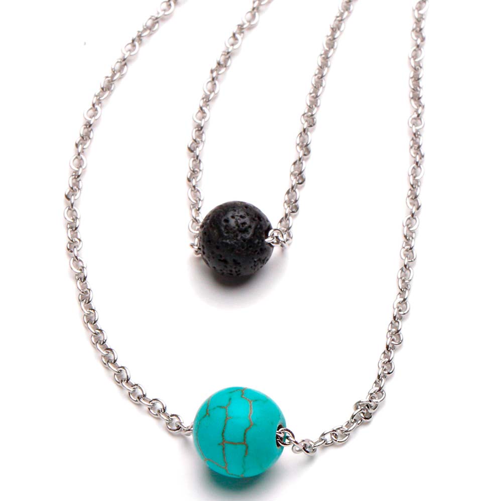 Колье чёрно-бирюзовое женское в повседневном стиле с прессованной бирюзой