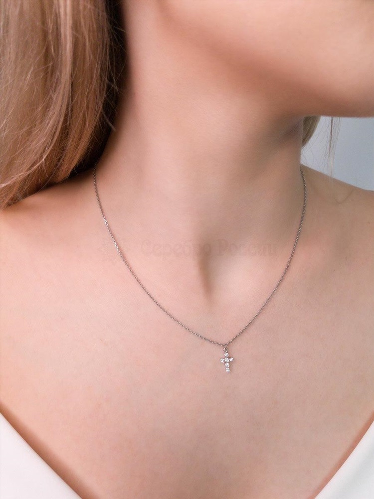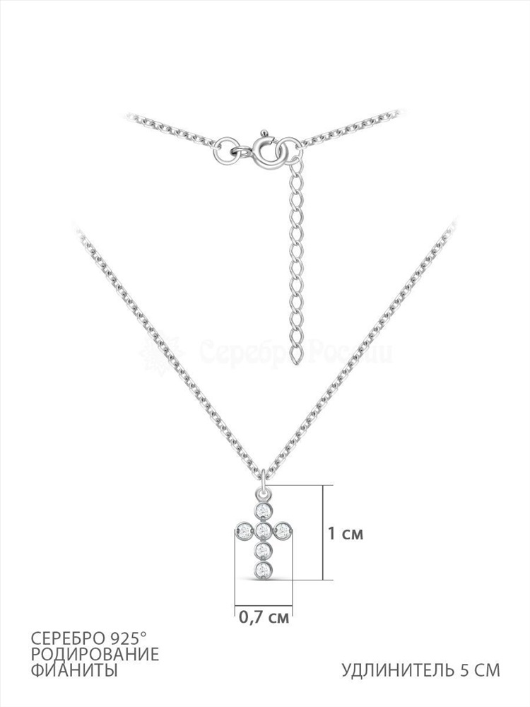 Колье из серебра с фианитами родированное - Удлинитель 5 см 925 пробы 441-10-407р