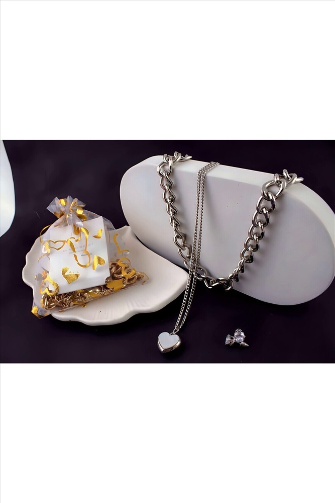 ID товара: 1133045 Состав: Металл, бижутерный сплав Сезон: Демисезон Колье на шею Сердце двустороннее Перламутр/Золото, + Подарок, в подарочном мешочке: двойная массивная цепочка на шею с подвеской Сердце двустороннее Перламутр/Золото создана из экологичного сплава отличается полновесной конструкцией и изысканной премиальной обработкой глянцевых звеньев, напоминающей роскошь драгоценных металлов. Сочетание массивной цепочки на шею и более тонкой длинной, украшенной двусторонней подвеской в форме сердца, создаёт эффектный и запоминающийся акцент и станет символом гармонии и вдохновения. Носите колье в соответствии с вашим настроением - она имеет две стороны: одна сторона сердца нежный перламутр, дарящий образу романтичность, а другая глянцевое золото, добавляющее элегантности и шика. Регулируемая длина колье составляет 36 см, а благодаря удлинительной цепочке (6 см), вы сможете подобрать оптимальную посадку, добавив длины по своему желанию и идеально подстраивать его под любой вырез или стиль одежды. Колье легко впишется в разный гардероб от легких летних образов до уютных осенне-зимних нарядов. Оно также идеально подходит для повседневной носки, добавляя изысканности даже самому простому образу. Сегодня крупные геометрические аксессуары под винтаж на пике популярности, и мы предлагает вам коллекцию, которая соответствует самым актуальным трендам в мире бижутерии. Каждое наше изделие это изящное сочетание стиля и комфорта. Мы тщательно отбираем лучшие модели, чтобы каждая наша вещь была необычным и модным украшением, которое приятно получить. Современный дизайн и универсальный размер ожерелья подходит и для молодых девушек, и для женщин, которые ценят изысканность. А утончённый стиль станет дополнением вечернего образа, праздничного наряда, строгого офисного имиджа или просто внесёт яркую деталь в повседневное время. Оно поможет вам создать неповторимый образ, который запомнится окружающим. А в качестве комплимента мы дарим пару сверкающих хрустальных гвоздиков, которые, словно маленькие капельки росы, привносят в образ свежесть и легкость. Эти миниатюрные сокровища добавят нотку нежности и изысканности в ваш ювелирный арсенал. Наш особенный комплект бережно собран в воздушный мешочек из органзы. Каждое украшение упаковано с любовью и заботой, чтобы радость от подарка была заверена с первого взгляда. Элегантный набор идеально подходит в качестве подарка просто вручите его, вам не надо думать дополнительно об упаковке! Станет прекрасным сюрпризом для вас самих, подруги, мамы или коллеги и для всех близких, - в любо Комментарии к товару