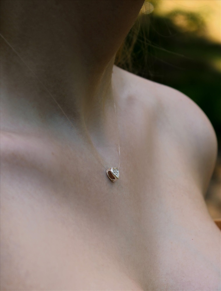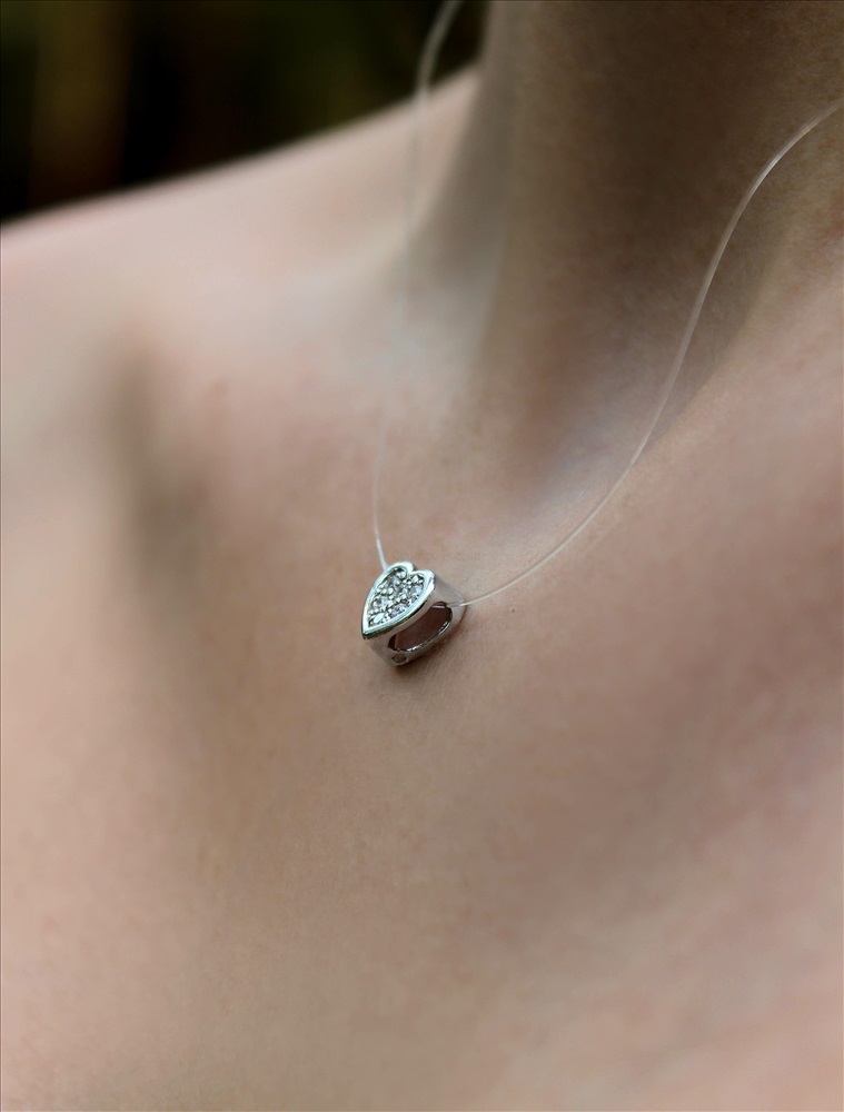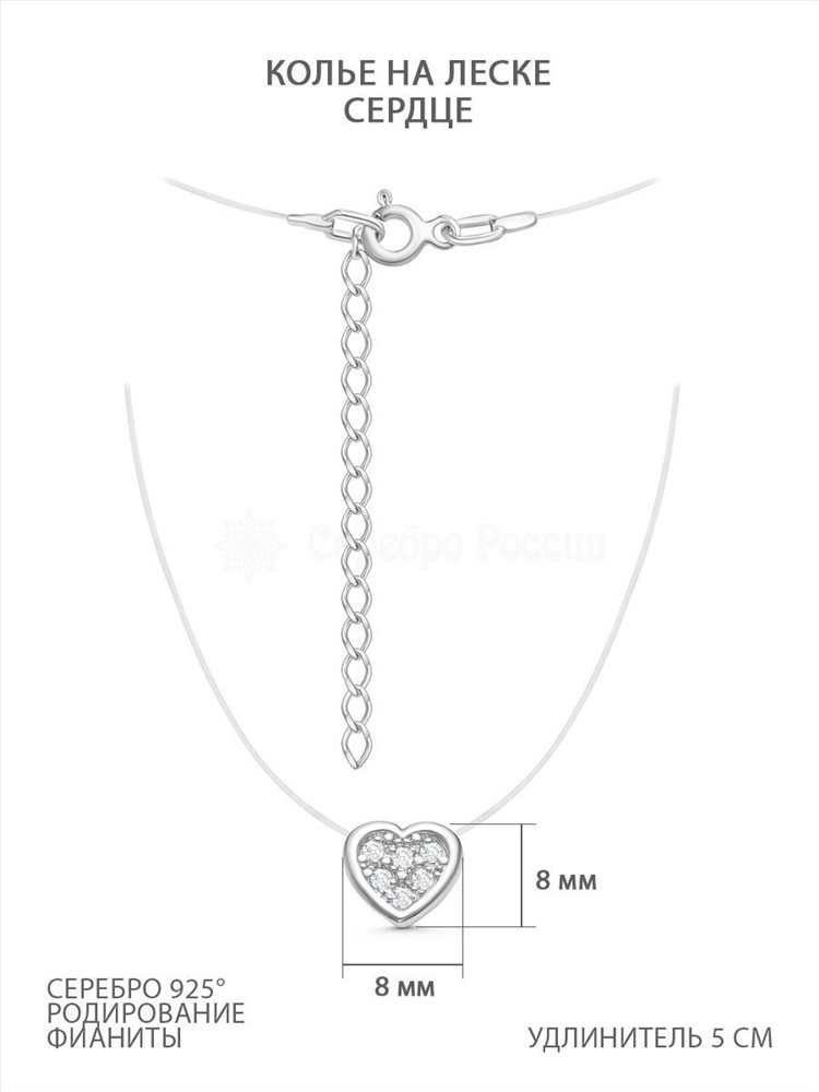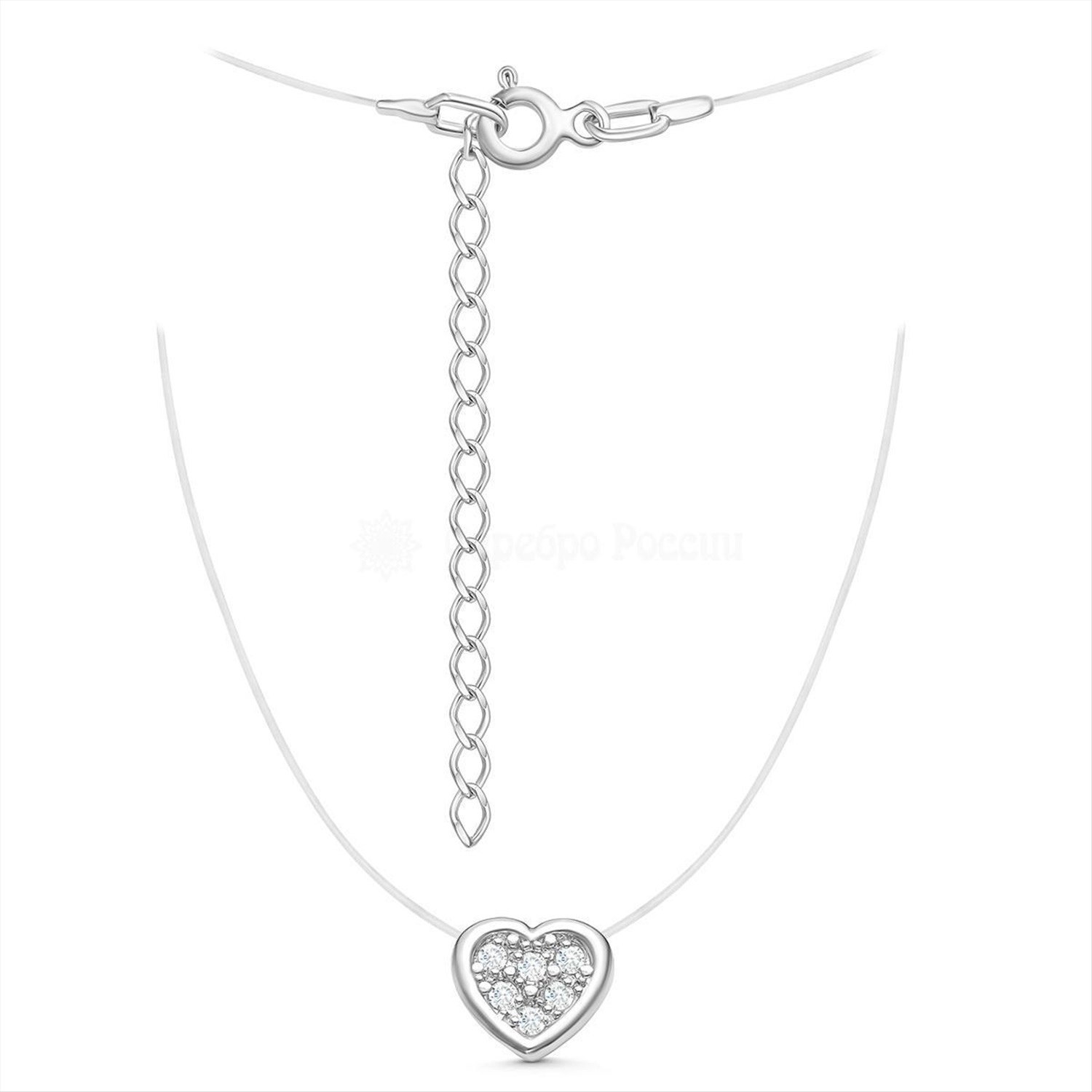 Колье Сердце из серебра с фианитами родированное (на леске) 925 пробы пк-03