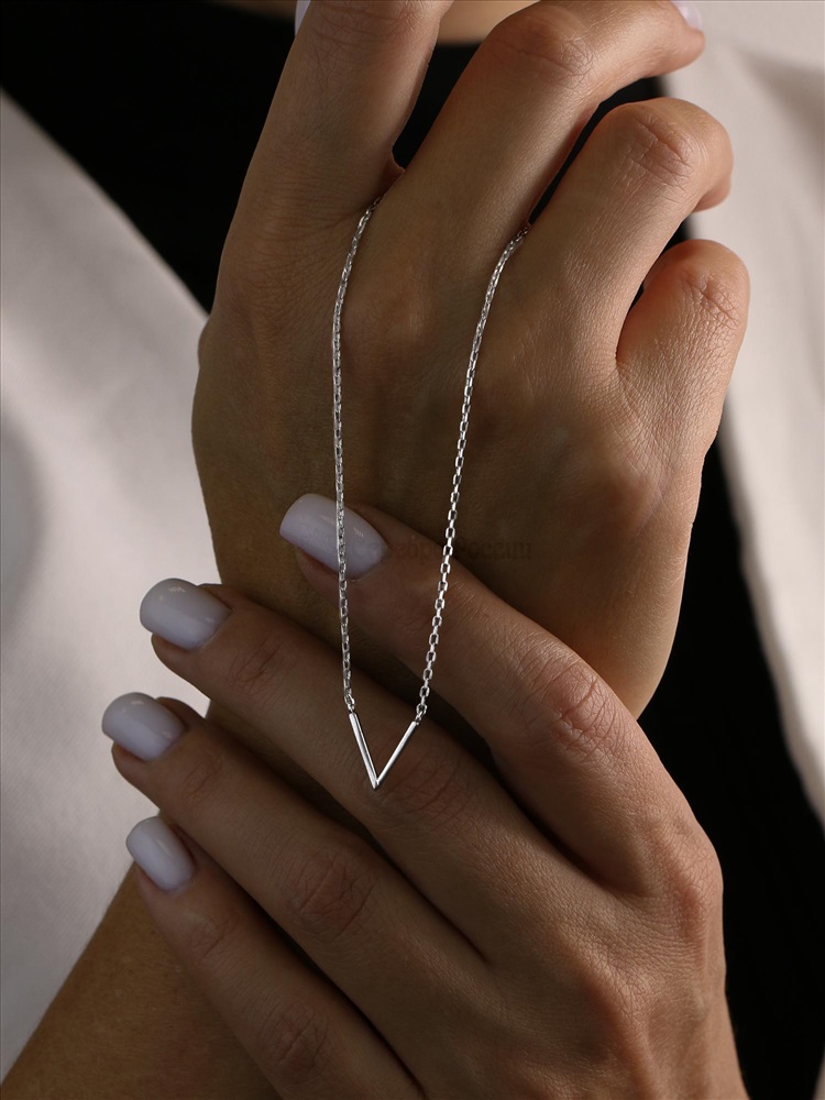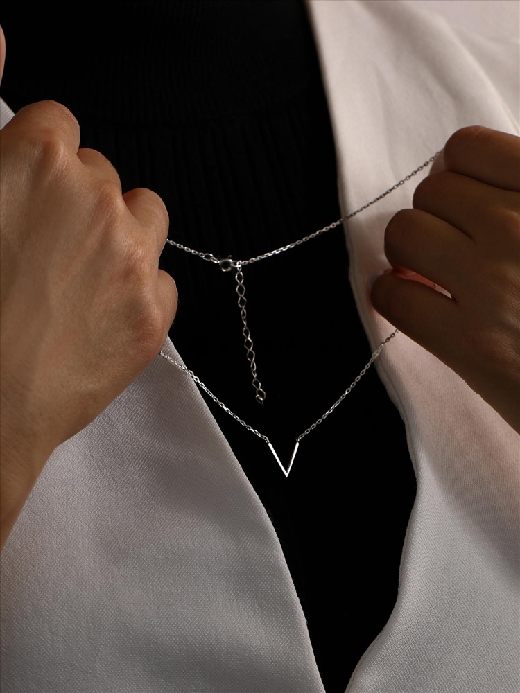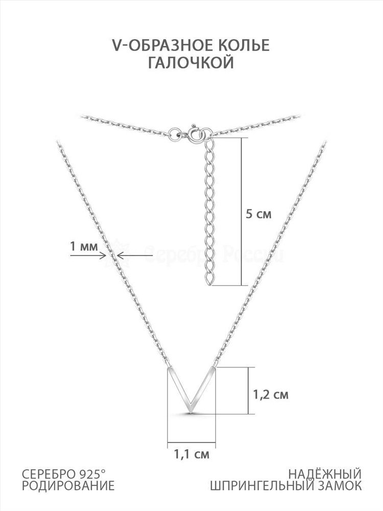 Колье женское V-образное из родированного серебра - Галочка 16-1430р