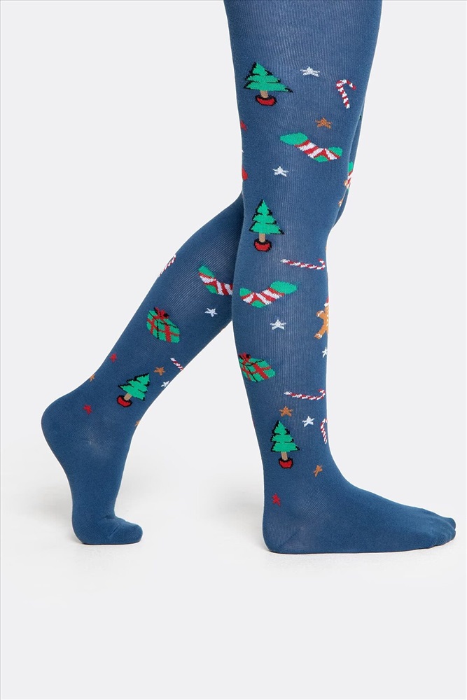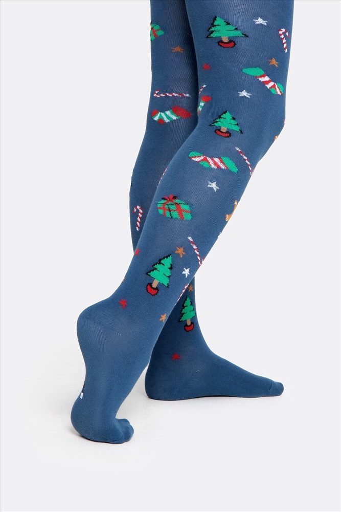 Гладкие колготки с рисунком в виде ёлок и печенья