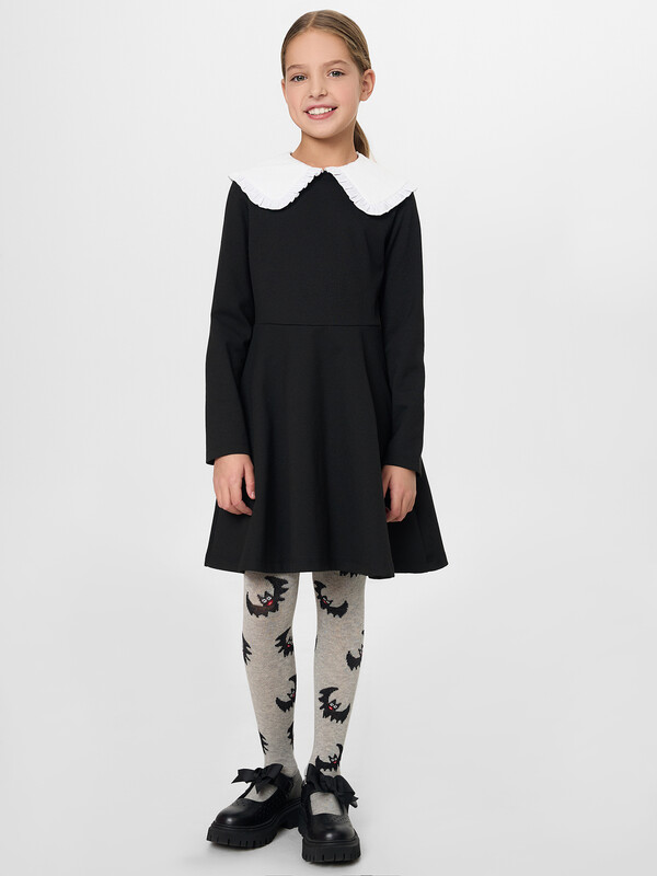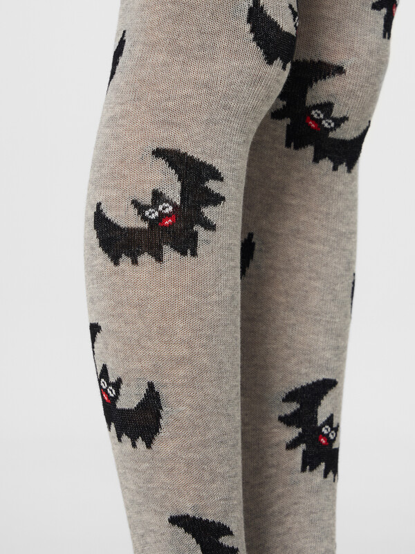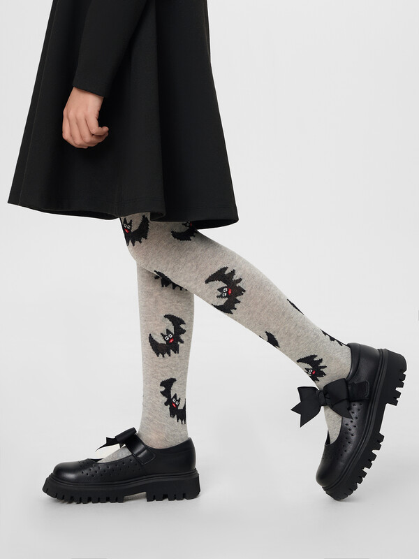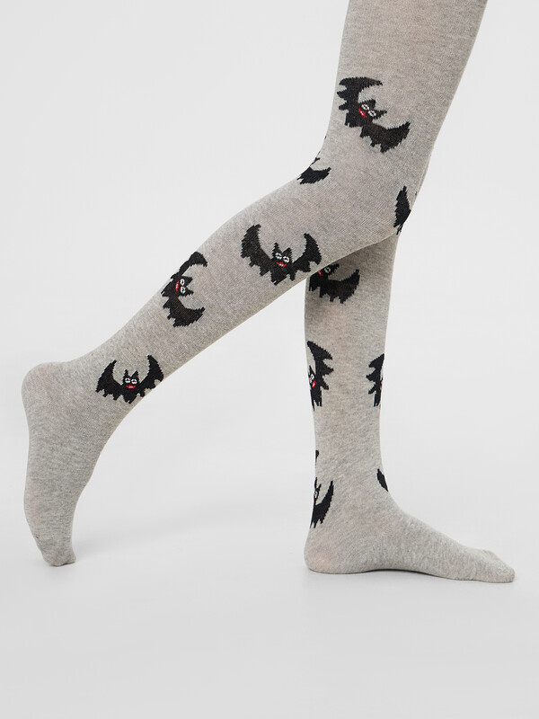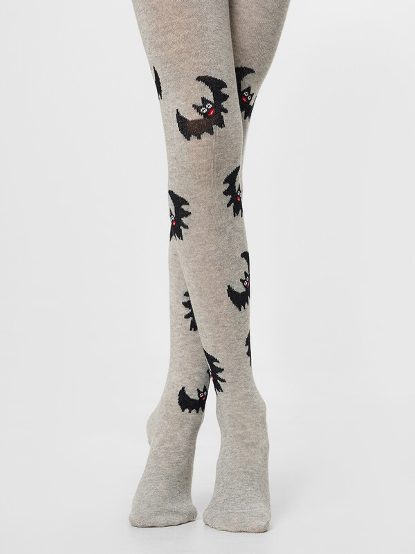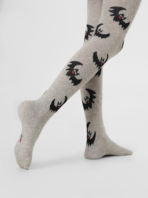 Рис.3390 Гладкие колготки с рисунком в виде летучих мышей и цветных пятки и мыска.