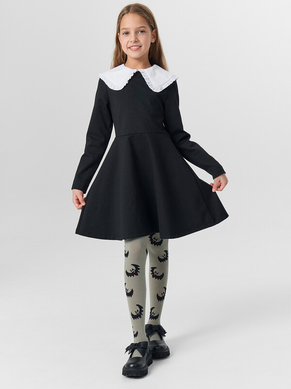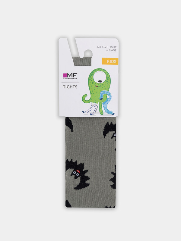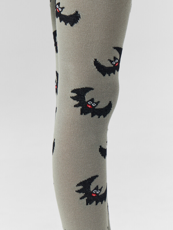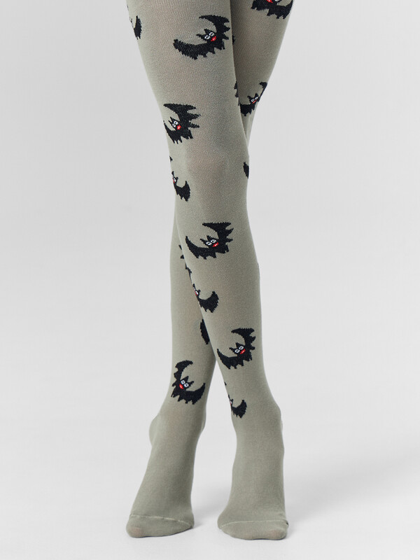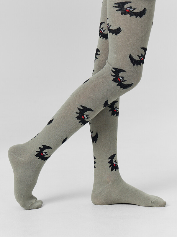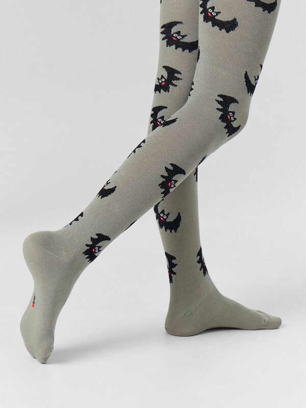 Рис.3390 Гладкие колготки с рисунком в виде летучих мышей и цветных пятки и мыска.