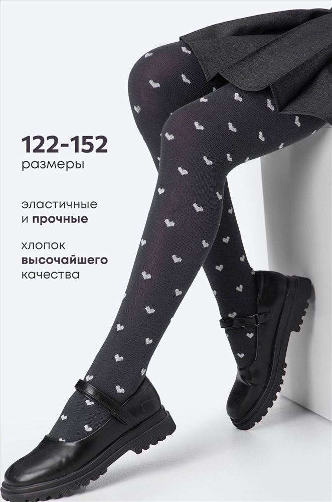 Детские колготки с рисунком Сердечки для девочек выполнены из натурального хлопка с добавлением синтетических волокон. Колготки хорошо тянутся и отлично сидят по ноге. Мягкие и приятные к телу колготки будут удобны в течение всего дня. Хлопковые серые колготки с эластичной резинкой на талии хорошо фиксируются на бедрах. Колготы средней посадки не крутятся и не сползают даже во время активных игр и занятий, аккуратные швы не натирают. Трикотажные колготки графитового цвета для детей идеально подойдут на каждый день, в школу, для прогулок. С нарядными колготками антрацитового цвета получится классный повседневный школьный образ. Демисезонные колготки из мягкого трикотажа – отличный вариант на весну и осень, в них не будет жарко, и при этом девочка не замерзнет прохладным утром или вечером. Модель Милана, рост 141 с, параметры 62-56-77 см. На ней колготки размера 140-146. Комментарии к товару