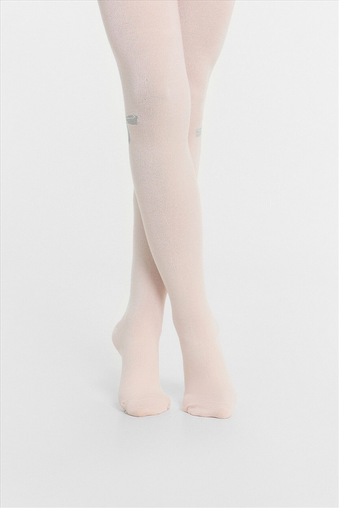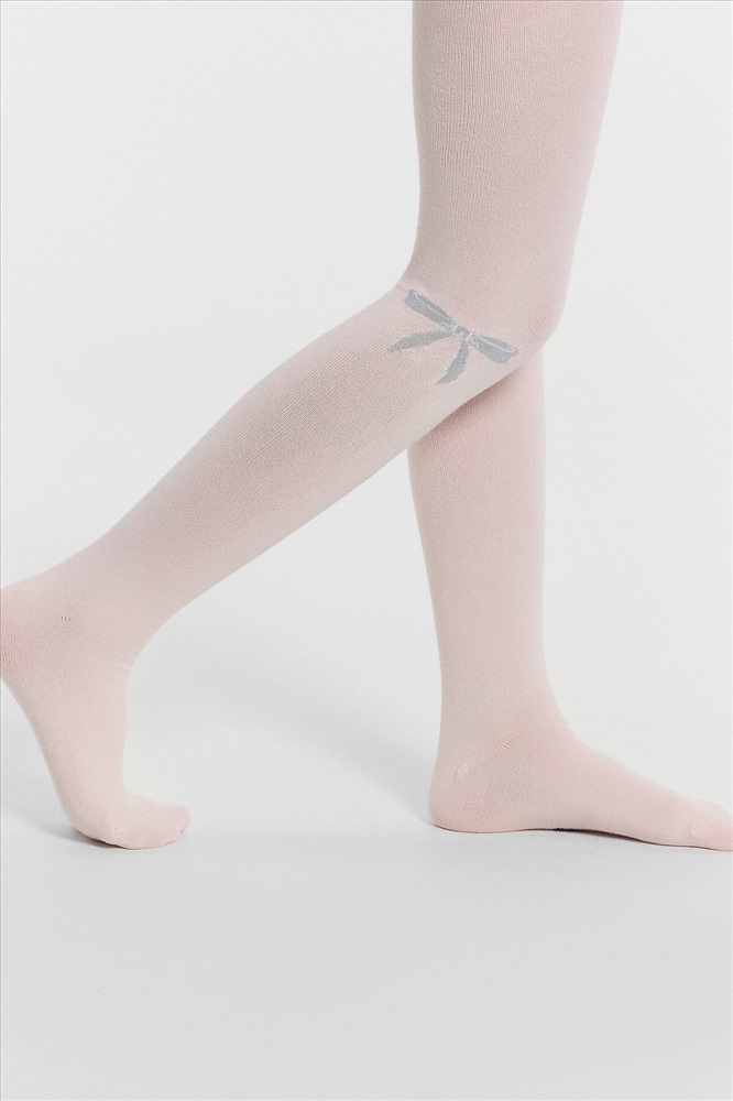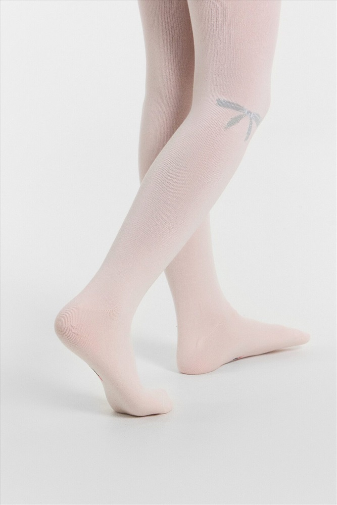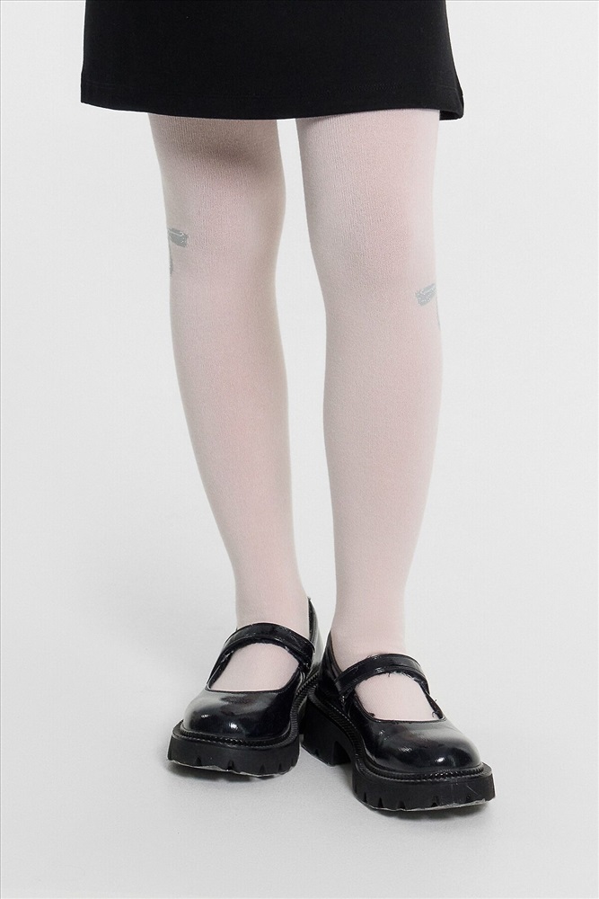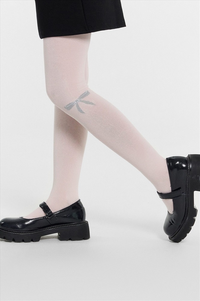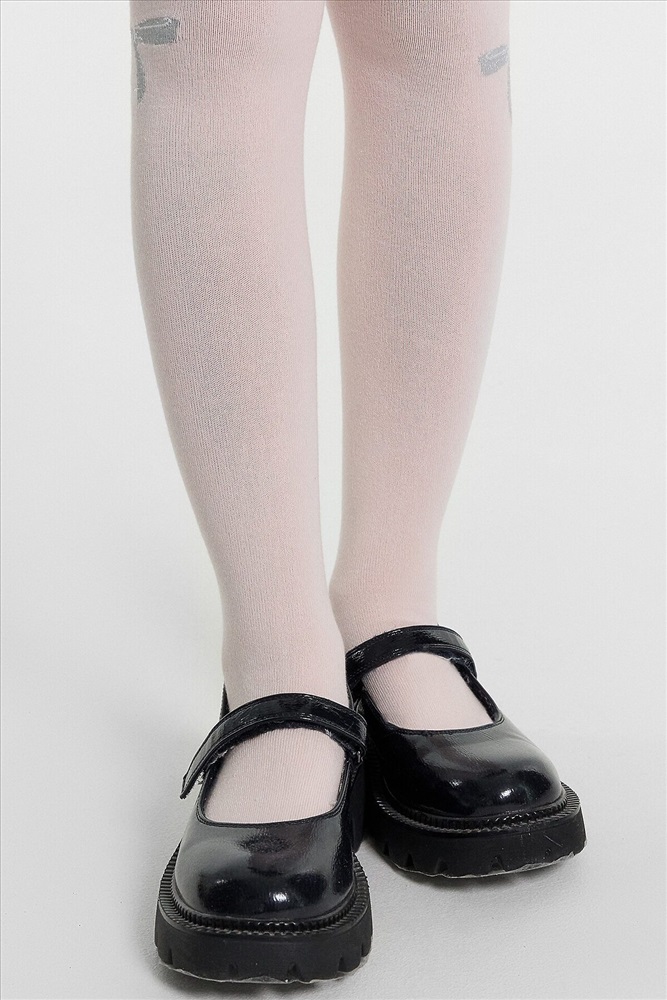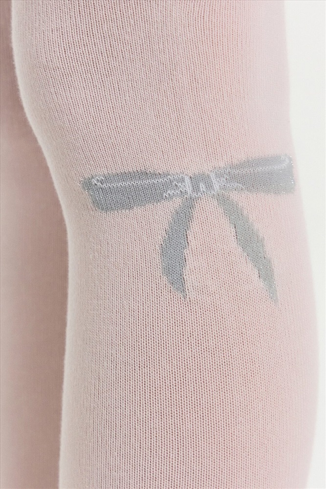 Рис.3218 Гладкие колготки с рисунком в виде блестящего бантика, рисунок образован с использованием люрексовой нити.
