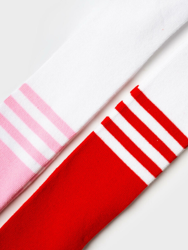 Детские колготки для девочки. Набор из 2 пар. Универсальные модели с розовым и красным дизайном. Колготки тянутся, хорошо сидят за счёт эластичного пояса, имеют удобную посадку и усиленный мысок и пятку. Материал — мягкий хлопковый трикотаж.