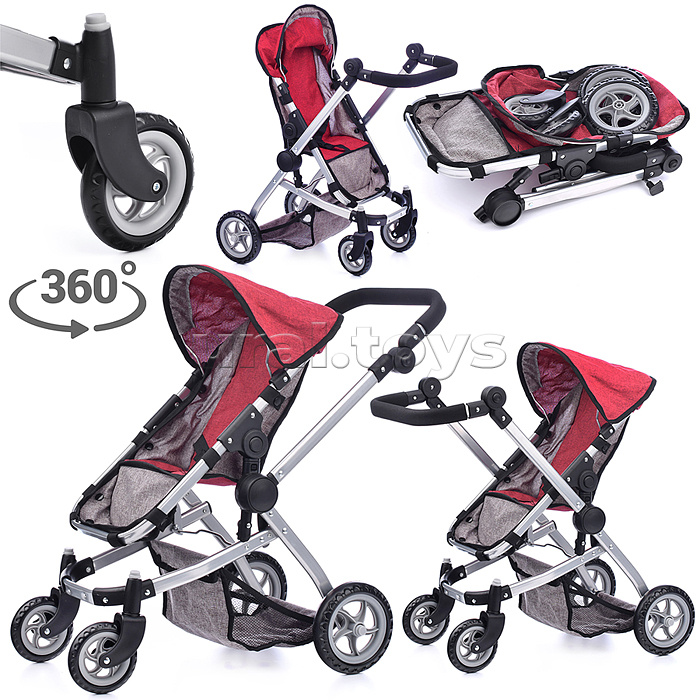 • Размеры коляски: 65х34х64 см. • Регулируемая высота ручки: 40-66 см. • Металлическая конструкция с перекидной ручкой. • Колёса пластиковые с накладками из ЭВА. • Диаметр колёс: 11 см. и 15 см. • Передние поворотные колёса (без фиксации). • 3-х-точечный ремень безопасности. • Складной капюшон. • Положение люльки можно менять. • Ручка с мягкой полимерной накладкой, регулируется нажатием боковых кнопок. • Мягкая съёмная корзина для аксессуаров внизу коляски. • Коляска подходит для кукол и пупсов ростом 38-43 см. • Соответствует требованиям безопасности и стандартам качества продукции. • Для детей от 2-х до 4 лет.