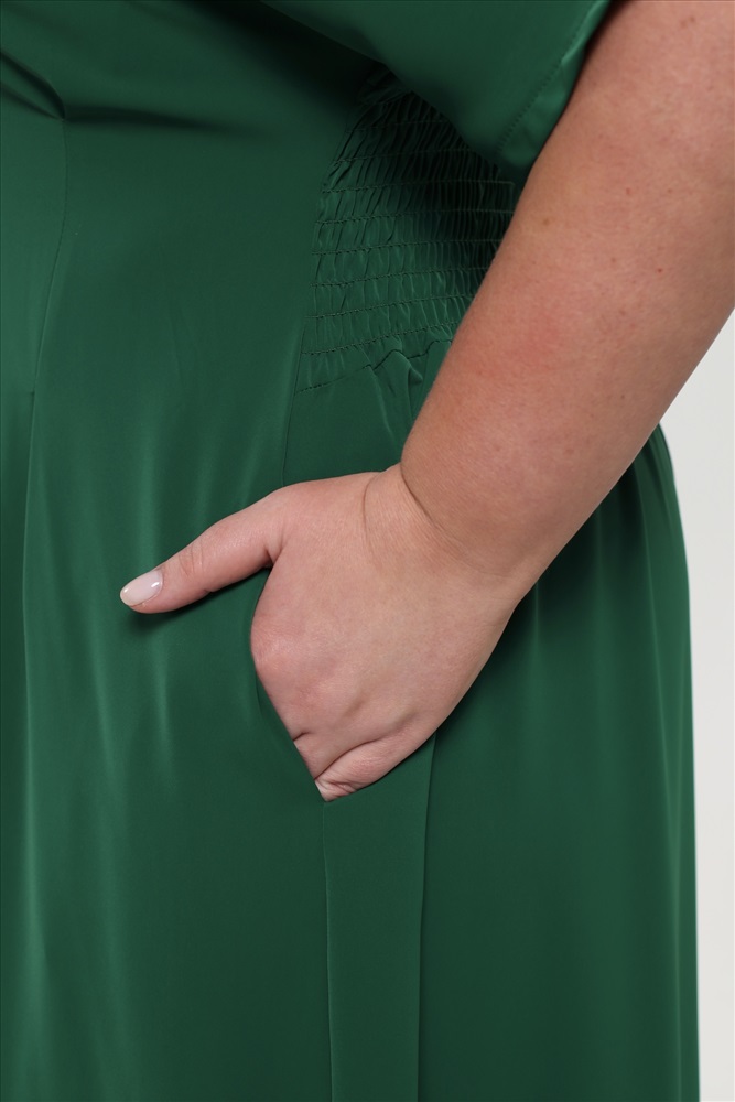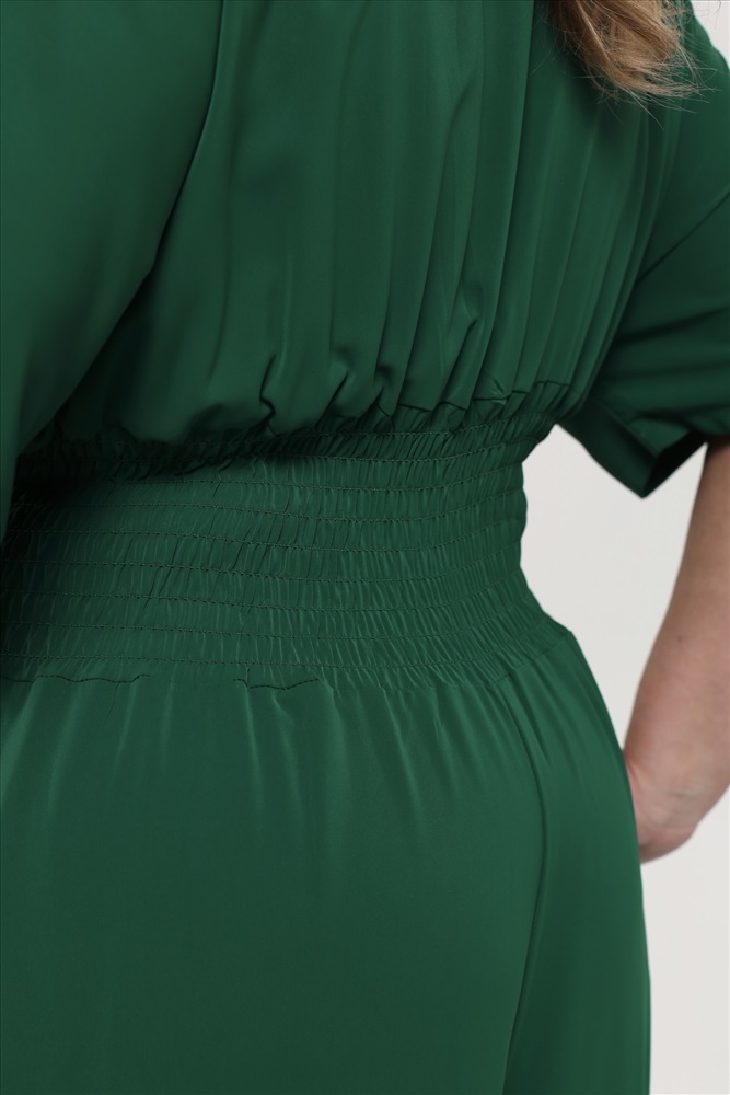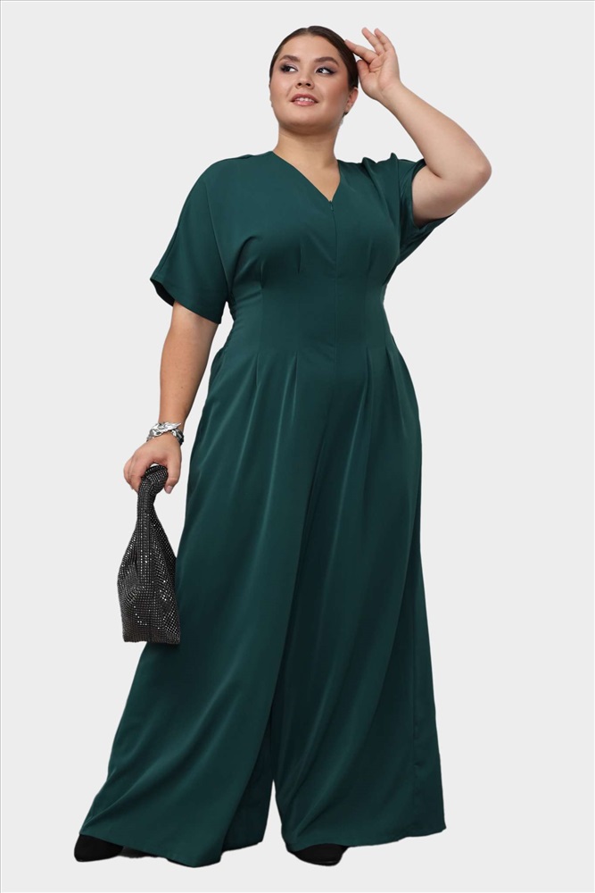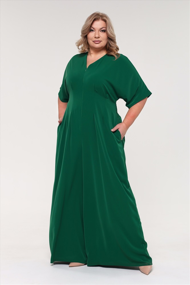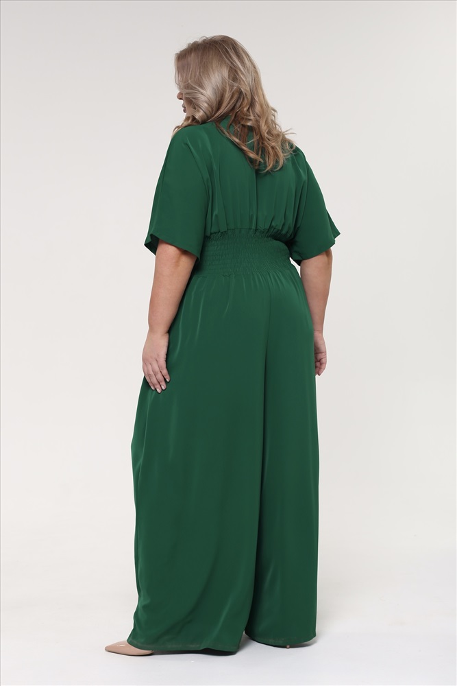 Эффектный комбинезон из мягкого материала имеет цельнокроеные короткие рукава. V-образный вырез на груди переходит в короткую молнию. Широкая резинка - венгерка по талии способствует оптимальной посадке по фигуре. По бокам практичные вшивные карманы. Модель привлекает внимание широким клёшем. Гламурный, лёгкий, выгодно подчеркивающий фигуру комбинезон сделает Вас заметной и выделит из толпы.
