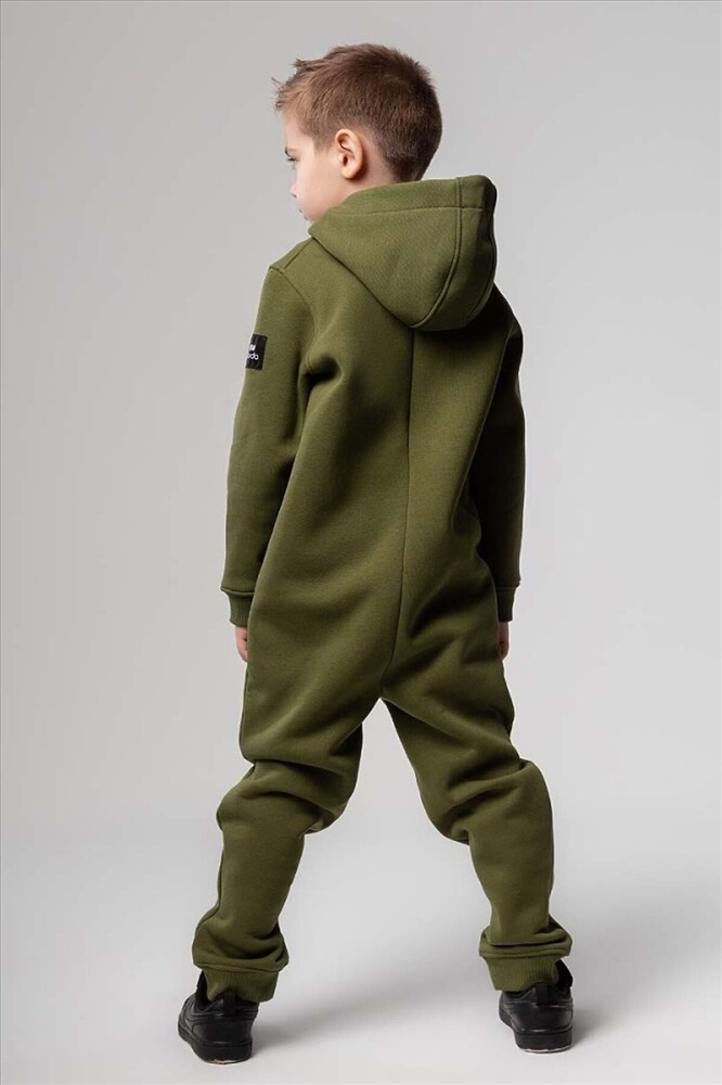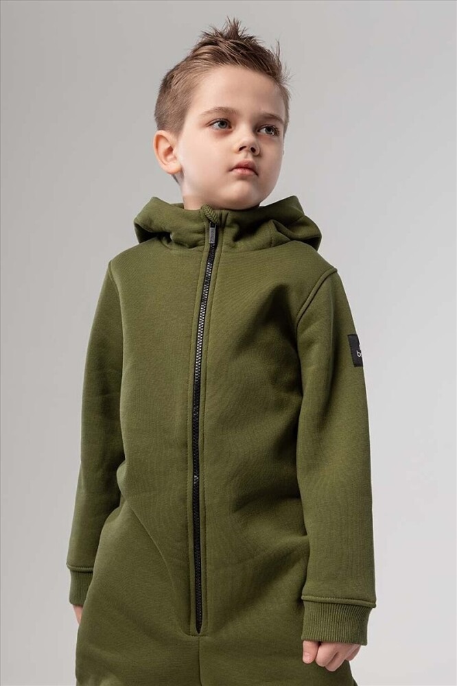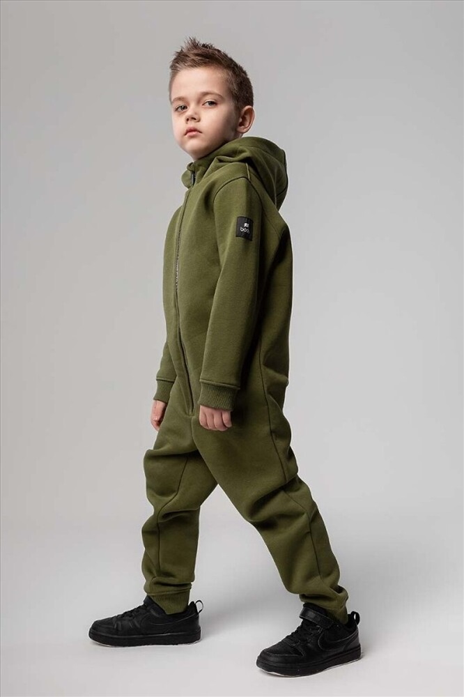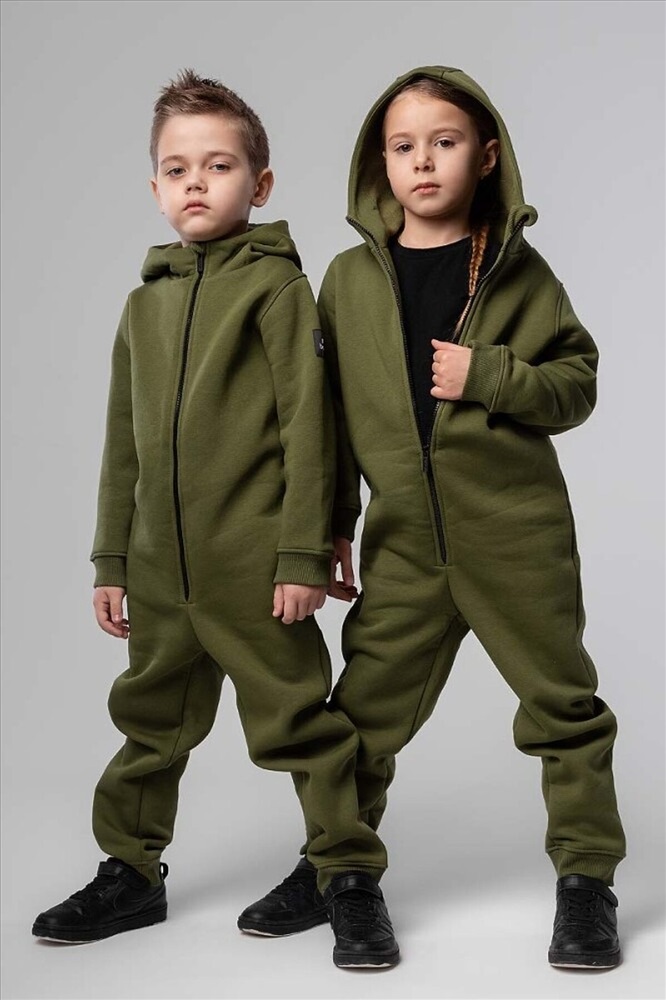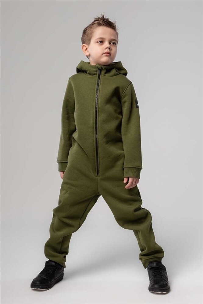 Страна производства: Россия Комбинезон для детей. Детали: несъемный капюшон, застежка - молния, манжеты, защитная планка на молнии. Состав: футер трехнитка с начесом 80% хлопок 20% полиэстер