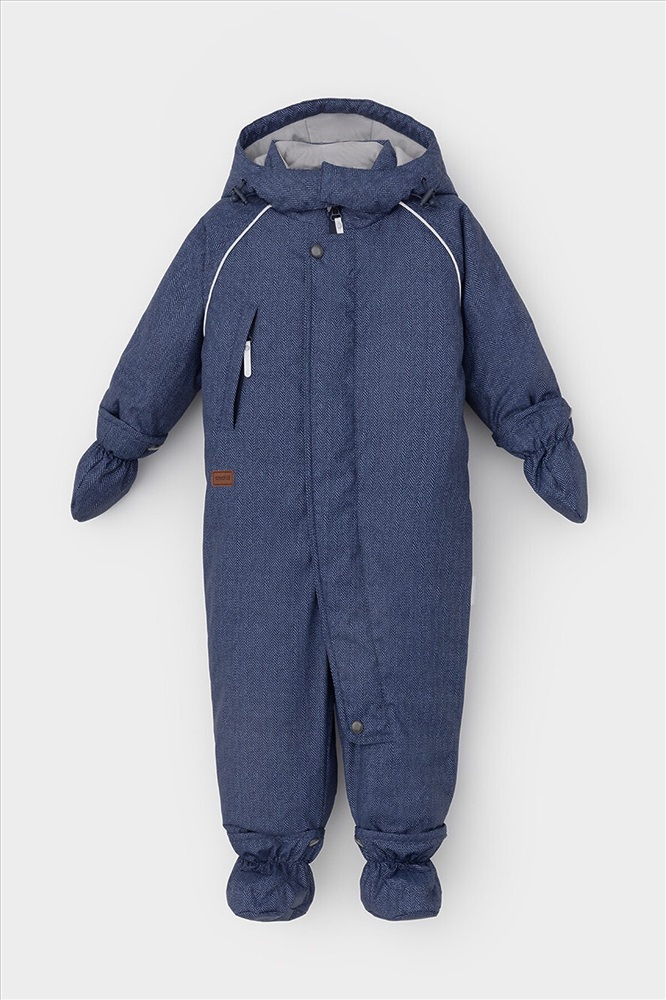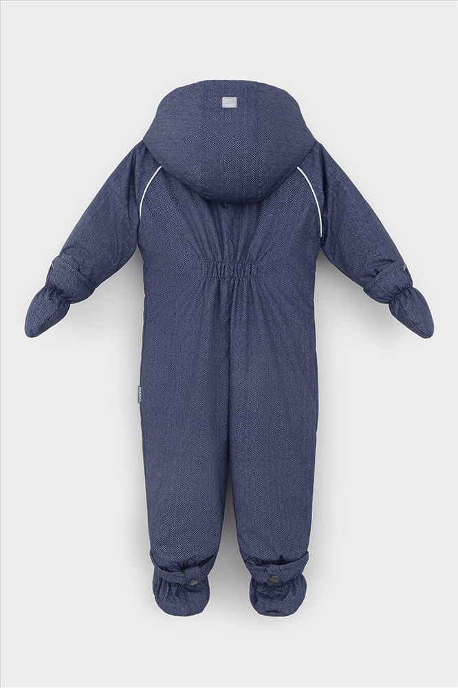 Зимний комбинезон ясельный с утеплителем SEE®: 250 г/м2. Выполнен из мембранной ткани с дополнительной тефлоновой обработкой, которая предохраняет изделие от загрязнений и отталкивает влагу. Подклад выполнен из 100% хлопка. Комбинезон застёгивается на молнию и внешнюю планку на липучках, предусмотрена защита подбородка. Несъёмный капюшон имеет эластичную утяжку со стопперами. Резинка по спинке для лучшего прилегания. На груди карман на молнии. По рукавам и низу изделия эластичные манжеты, на ножках отстёгивающиеся силиконовые штрипки. В размерах 74-80 и 80-86 в комплекте идут рукавицы и пинетки. Во всех изделиях верхнего ассортимента для безопасности ребёнка предусмотрены светоотражающие элементы.