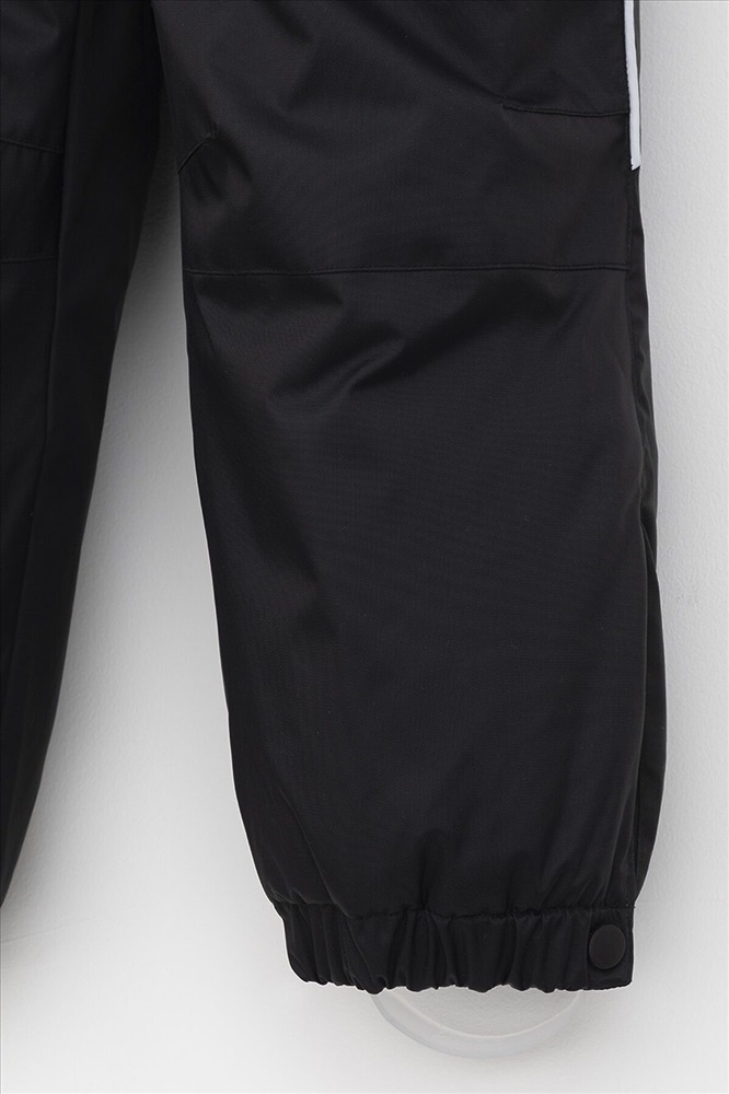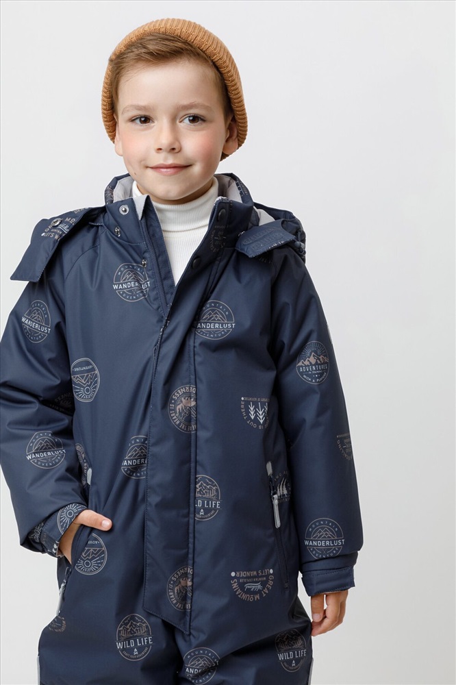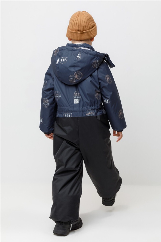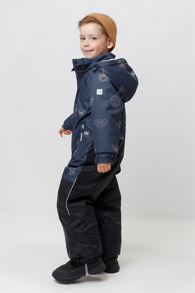 Зимний комбинезон для мальчика с утеплителем SEE®: 250 г/м2 . Выполнен из мембранной ткани с дополнительной тефлоновой обработкой, которая предохраняет изделие от загрязнений и отталкивает влагу. Подклад выполнен из 100% полиэстера Tricot. Комбинезон застёгивается на молнию и внешнюю планку на липучках и кнопках, предусмотрена защита подбородка. Съёмный капюшон имеет эластичную утяжку со стопперами. Резинка по спинке обеспечивает лучшее прилегание. По бокам два кармана на молнии. Эластичные манжеты на рукавах регулируются по ширине с помощью липучки, по низу изделия - с помощью кнопки. Внутренняя противоснежная юбка защищает обувь от попадания снега и удерживает комбинезон в закреплённом положении. В размерах с 98-104 по 116-122 предусмотрены отстёгивающиеся штрипки. Во всех изделиях верхнего ассортимента для безопасности ребёнка предусмотрены светоотражающие элементы.