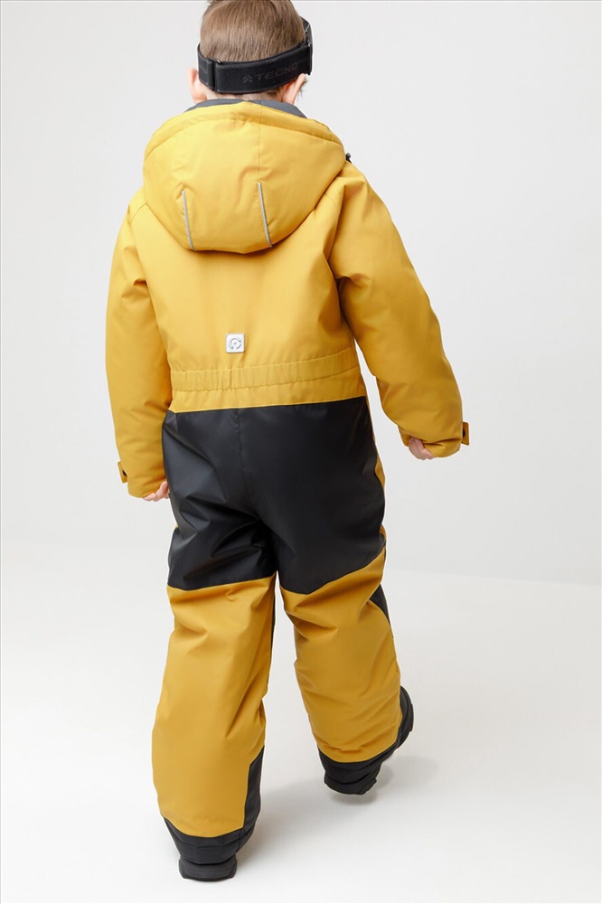 Зимний комбинезон для мальчика с утеплителем SEE®: 250 г/м2 . Выполнен из мембранной ткани с дополнительной тефлоновой обработкой, которая предохраняет изделие от загрязнений и отталкивает влагу. Подклад выполнен из 100% полиэстера Tricot. Комбинезон застёгивается на молнию и внешнюю планку на липучках и кнопках, предусмотрена защита подбородка. Съёмный капюшон имеет эластичную утяжку со стопперами. Резинка по спинке обеспечивает лучшее прилегание. По бокам два кармана на молнии. На рукавах дополнительние внутренние манжеты, ширина регулируются с помощью липучки. Внутренняя противоснежная юбка по низу изделия защищает обувь от попадания снега и удерживает комбинезон в закреплённом положении. В размерах с 98-104 по 116-122 предусмотрены отстёгивающиеся штрипки. Во всех изделиях верхнего ассортимента для безопасности ребёнка предусмотрены светоотражающие элементы.