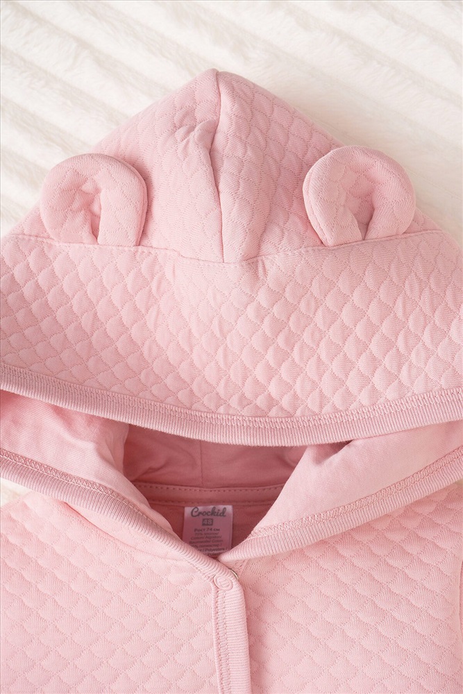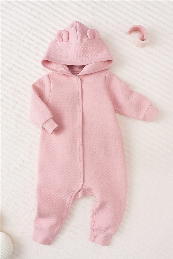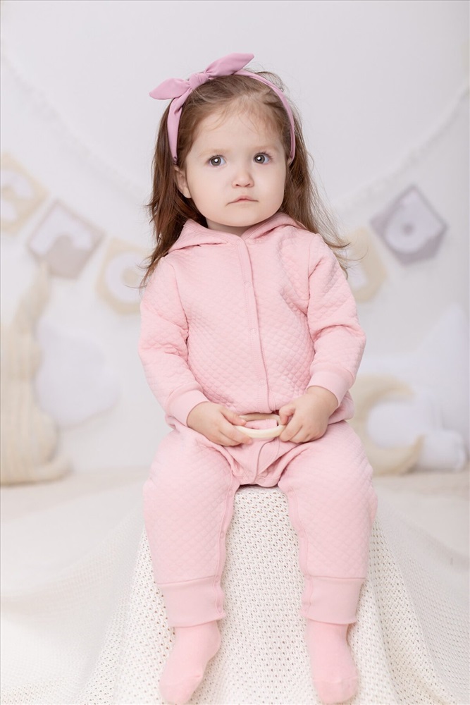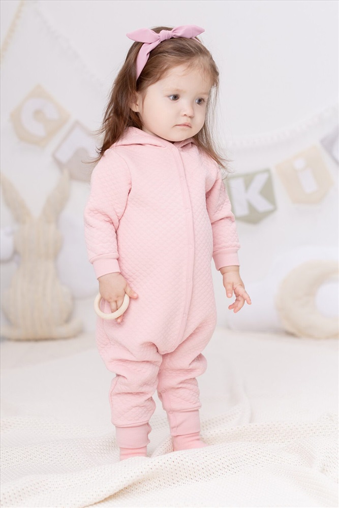 Тёплый комбинезон для новорожденных из капитония. Капюшон с подкладом из супрема. Изделие застёгивается на кнопки. Эластичные манжеты из рибаны. Капитоний - это стёганное трикотажное полотно с утеплителем из полиэстеровой нити. Все трикотажные полотна производятся в соответствии с нормами Швейцарского сертификата ЭкоТекс.