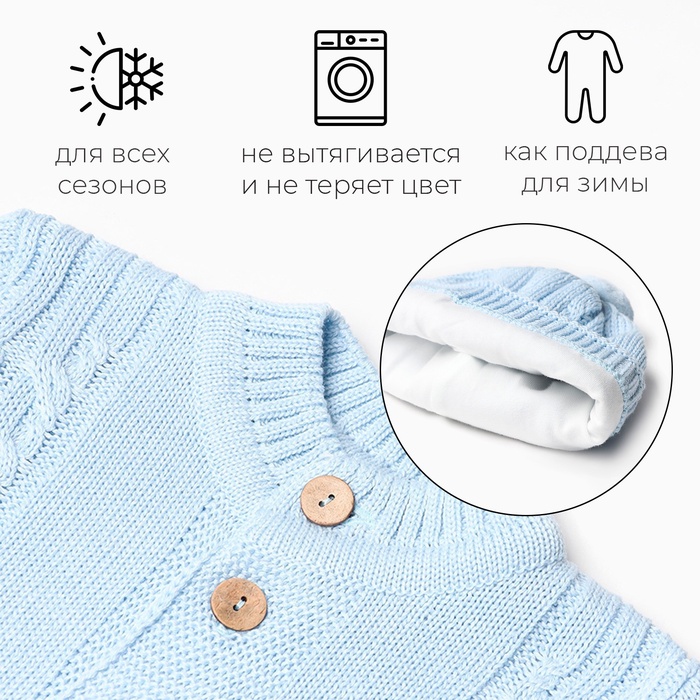 Габариты: 31 x 24 x 4 В боксе: 51 шт Для кого: Для мальчика, Для девочки Размер: 26 Рост, см: 92, 98 Сезон: Зима, Демисезон Рекомендации по уходу: Деликатная стирка при 30 °С, Деликатный режим отжима, Бережный режим глажки, Не отбеливать Состав ткани: Акрил, Хлопок Страна: Россия Состав: Акрил 50%, хлопок 50% Материалы: акрил, хлопок Фасовка: по 1 шт Сертификат: ЕАС Цвет: Голубой Назначение: Повседневная Ткань: Вязаный трикотаж Вид застёжки: Пуговицы(-а) Тематика: Однотонная Вырез горловины: Круглый Вид: Комбинезон Особенности: С открытыми ножками Фиксированная цена: Да Комментарии к товару