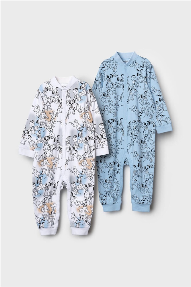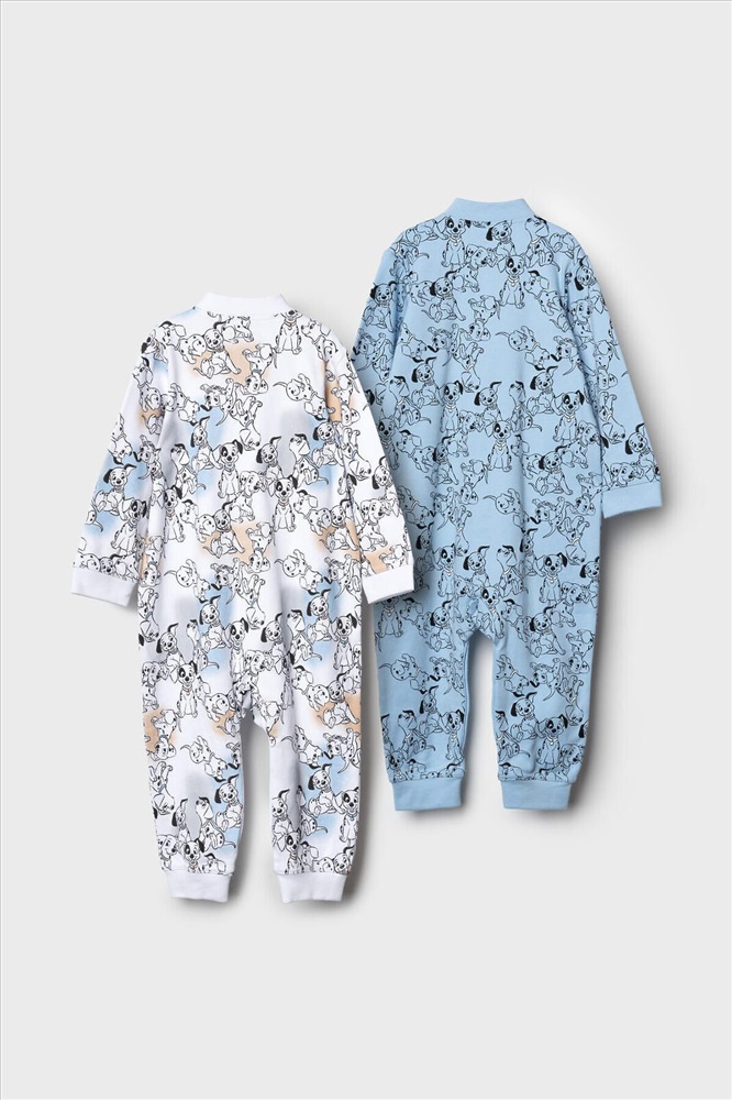 ID товара: 1242081 Состав: 100% хлопок Сезон: Весна/Лето Комбинезон для новорожденного мальчика. Набор из 2 штук. Один — с ярким принтом на белом фоне с голубыми и бежевыми акцентами, второй — однотонный голубой с рисунками щенков. Модель с длинными рукавами и манжетами на запястьях и щиколотках, застегивается спереди на кнопки, проходящие до низа. Изготовлен из мягкого хлопкового трикотажного полотна — интерлока. Комментарии к товару