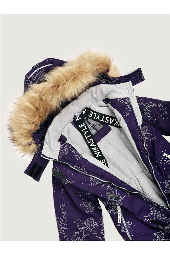 ID товара: 1125269 Сезон: Осень/Зима Длина: Полная Фасон: Прямой Рукав: Длинные Вид застежки: Молния Подкладка: флис + п/э (100% полиэстер) Рисунок: Фантазийный Тип карманов: Прорезные Декоративные элементы: С капюшоном Утеплитель: Fiberlite 250 (100% полиэстер) Стиль: повседневный Материал верха: МЕМБРАНА BREATEX Teflon WR 5000/5000 (100% полиэстер) Мембрана: Да Мех опушки: Искусственный Температурный режим: От 0°С до -25°С Страна бренда: Россия Страна производства: Россия Комбинезон ДРУЗЬЯ с системой роста на один размер (длина рукавов и брючин увеличивается на 4-5см).Комбинезон из мембранной ткани 5000/5000 с водо- грязеотталкивающей технологией TEFLON.Мембранная ткань это непродуваемый и водонепроницаемый материал, который надежно защитит от ветра и влаги. Благодаря дышащим свойствам мембраны ребенку будет комфортно в любую погоду и он не вспотеет. Дополнительно на ткань нанесен светоотражающий принт. Ткань обработана снаружи экологически чистым протектором TEFLON для защиты от воды и грязи.Мембрана в сочетании с утеплителем нового поколения FIBERlite сохранит тепло во время прогулок, позволит телу дышать. Флисовая подкладка отводит влагу и имеет хорошие теплоизоляционные свойства. Функционал: - центральная застежка и карманы на молнии, - ветрозащитная планка, - съемный капюшон и меховая опушка на молнии, - кулиса для регулировки объема по капюшону, - резинка на спинке для придания силуэта, - внутренние бретели для возможности снять верхнюю часть изделия в помещении. Мы все продумали до мелочей, поэтому модель дополнительно оснащена:- мягкими трикотажными манжетами в рукавах, - снегозащитными муфтами на брючинах, - светоотражающими элементами для безопасности ребенка в темное время суток. Область колен и шов сидения проклеены, места повышенного трения выполнены из усиленной ткани.Комфортная температура эксплуатации от 0°С до -25° С. Рекомендуем приобрести комплектом аксессуары, обувь и другие вещи из капсулы в карточке товара, которые отлично сочетаются с изделиями коллекции. Комментарии к товару