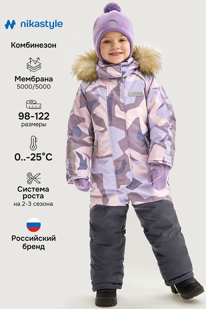 Комбинезон ЛАБИРИНТ с системой роста на один размер (длина рукавов и брючин увеличивается на 4-5см).Комбинезон из мембранной ткани 5000/5000 с водо-грязеотталкивающей технологией TEFLON. Мембранная ткань это непродуваемый и водонепроницаемый материал, который надежно защитит от ветра и влаги. Благодаря дышащим свойствам мембраны ребенку будет комфортно в любую погоду, и он не вспотеет. Ткань обработана снаружи экологически чистым протектором TEFLON для защиты от воды и грязи. Мембрана в сочетании с утеплителем нового поколения FIBERlite сохранит тепло во время прогулок, позволит телу дышать. Флисовая подкладка отводит влагу и имеет хорошие теплоизоляционные свойства. Функционал:- центральная застежка и карманы на молнии, - ветрозащитная планка, - съемный капюшон и меховая опушка на молнии, - кулиса для регулировки объема, - резинка на спинке для создания силуэта, - внутренние бретели для возможности снять верхнюю часть изделия в помещении. Мы все продумали до мелочей, поэтому модель дополнительно оснащена:- мягкими трикотажными манжетами в рукавах, - флисовой подкладкой до середины бедра, - снегозащитными муфтами на брючинах, - силиконовыми штрипками,- светоотражающими элементами для безопасности ребенка в темное время суток. Область колен и шов сидения проклеены, места повышенного трения выполнены из усиленной ткани.Комфортная температура эксплуатации от 0° до -25° С. Рекомендуем приобрести комплектом аксессуары, обувь и другие вещи из капсулы в карточке товара, которые отлично сочетаются с изделиями коллекции.