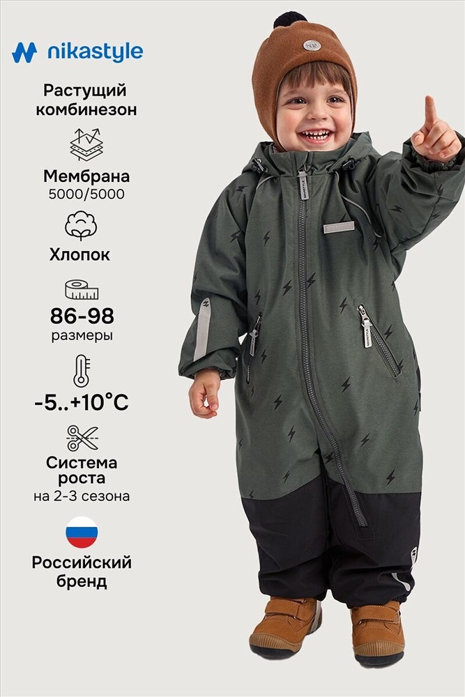 Комбинезон МОЛНИЯ с системой роста на один размер (длина рукавов и брючин увеличивается на 4-5см).Комбинезон из мембранной ткани 5000/5000 с водо- грязеотталкивающей технологией TEFLON.Мембранная ткань - это непродуваемый и водонепроницаемый материал, который надежно защитит от ветра и влаги. Благодаря дышащим свойствам мембраны ребенку будет комфортно в любую погоду, и он не вспотеет.Ткань обработана снаружи экологически чистым протектором TEFLON для защиты от воды и грязи. Мембрана в сочетании с утеплителем нового поколения FIBERlite сохранит тепло во время прогулок, позволит телу дышать. Хлопковая подкладка обеспечит повышенный комфорт для ребенка.Функционал: - длинная центральная застежка обеспечивает легкое одевание малыша, - ветрозащитная планка, - карманы на молнии, - капюшон с кулисой для регулировки объема, - резинка на спинке для создания силуэта. Мы все продумали до мелочей, поэтому модель дополнительно оснащена:- манжетами на резинке, силиконовыми штрипками,- внутренними бретелями для возможности снять верхнюю часть изделия в помещении, - светоотражающими элементами для безопасности ребенка в темное время суток. Внутренняя сторона манжета из флиса, шов сидения проклеен, низ брюк на резинке, В комбинезоне предусмотрена СИСТЕМА РОСТА. Удлинить рукава и штанины можно, удалив строчку на подкладке и комбинезон подрастет вместе с ребенком. Комфортная температура эксплуатации от -5°С до +10°С. Рекомендуем приобрести комплектом аксессуары, обувь и другие вещи из капсулы в карточке товара, которые отлично сочетаются с изделиями коллекции.