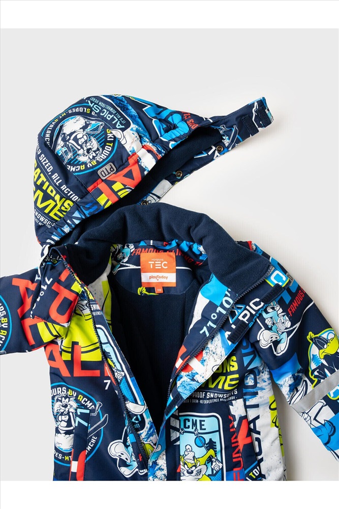 ID товара: 1223270 Состав: Верх- 100% Полиэстер; Мембрана 5000*5000; Подкладка- флис, таффета; Утеплитель- 200 г/м2 Сезон: Осень/Зима Длина: Полная Фасон: Прямой Рукав: Длинные Вид застежки: Молния Рисунок: Абстракция Тип карманов: Прорезные Декоративные элементы: С капюшоном Утеплитель: с утеплителем, 200 г/м2 Стиль: повседневный Реком. темп. режим: до -20ºС Страна бренда: Германия Страна производства: Китай Зимний детский комбинезон Луни Тюнз для мальчика от PlayToday — надежная защита и комфорт в холодное время года с температурным режимом от –5 до –20 °C. Эта модель создана специально для активных детей, которым важны тепло, свобода движений и практичность. Преимущества модели: + температурный режим от –5 до –20 °C — идеален для холодных зимних дней + мембрана 5000*5000 — высокая защита от ветра и влаги при отличной воздухопроницаемости + мягкая флисовая подкладка — сохраняет тепло и обеспечивает комфорт + внешняя ветрозащитная планка на липучке + съемный капюшон на резинке — удобно регулируется и надежно защищает от непогоды + утяжка по талии со стопперами — обеспечивает идеальную посадку и удержание тепла + рукава на резинке и эластичный манжет с прорезью для пальца — препятствуют проникновению холода и снега + карманы на липучке — удобные и безопасные для хранения мелочей + крепления для варежек/перчаток на рукавах + силиконовые штрипки — фиксируют брючины комбинезона на обуви, предотвращая попадание снега + светоотражающие элементы Размерный ряд: 98-122 см — оптимально для мальчиков дошкольного и младшего школьного возраста от 3 до 7 лет. Когда носить: Идеально подходит для прогулок на улице, зимних игр, походов в школу или детский сад в холодный сезон. Советы по стилю: Сочетайте комбинезон с яркими шапками, варежками и утепленной обувью. Добавьте шарф и теплый свитер, чтобы создать стильный и комфортный зимний образ. PlayToday заботится о том, чтобы ваш ребенок оставался активным и защищённым в любую погоду! Комментарии к товару