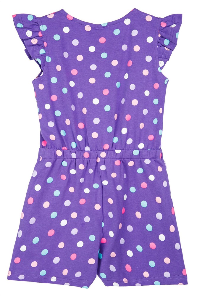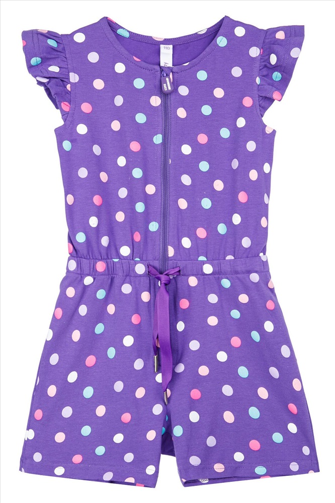 Комбинезон из качественного и приятного на ощупь трикотажа джерси. Высокое содержание хлопка 95%. Благодаря наличию эластана в составе ткани изделие проще в уходе и держит форму. Рукава-крылышки. Застежка на молнию. По талии эластичный пояс со шнурком.