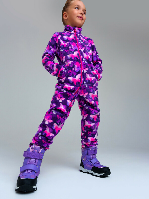 Производитель: PlayToday Комбинезон детский из флиса для девочки. Линия NORD ( warm)  – для повседневной одежды второго слоя в холодное время года. Плотность флиса 260 г/м2. Воротник-стойка. Манжеты с эластичной окантовкой. Клапан для защиты подбородка при застегивании молнии. Комфорт посадки обеспечен за счет конструктивной резинки на поясе сзади.   Флисовая поддева идеально подходит под зимний мембранный костюм или комбинезон, в качестве второго слоя в трехслойной концепции одежды для зимы. Основная функция поддевы из флиса – удерживать тепло и передавать пар от первого слоя – термобелья, оставаясь сухим.