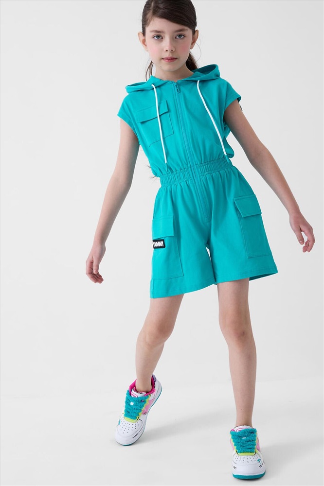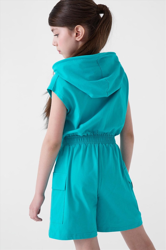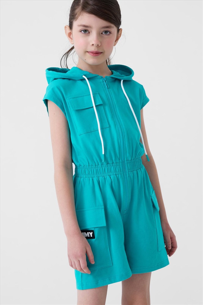ID товара: 1240340 Состав: 95% хлопок, 5% эластан Сезон: Весна/Лето Легкий летний комбинезон для девочки подростка. Выполнен из мягкого, хлопкового трикотажа. Модель без рукавов, с капюшоном. На талии — широкая эластичная вставка, которая подчеркивает силуэт и делает посадку более удобной. Спереди — застежка на молнии, а также декоративный нагрудный карман. По бокам — объемные накладные карманы, на которых размещены силиконовые лейблы. Комментарии к товару