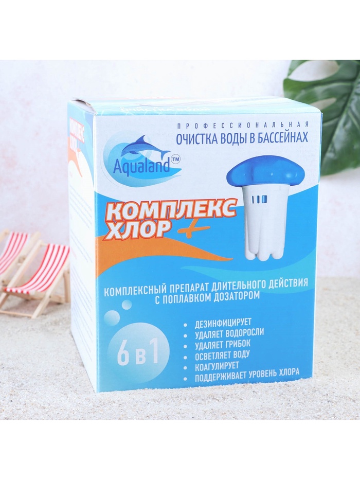 Габариты: 20,5 x 17 x 17 Страна: Россия В боксе: 12 шт Состав: См. на упаковке Материалы: см. на упаковке Фасовка: по 1 шт Индивидуальная упаковка: Без упаковки Сертификат: Не подлежит сертификации Вид средства: Комплекс Форма выпуска: Картридж Фиксированная цена: Да Комплексный препарат длительного действия с поплавком-дозатором. Подходит для полной очистки воды в бассейне. Готовый к использованию набор состоит из таблеток быстрого хлора, медленного хлора, коагулянта (осветление воды) альгицида (борьба с водорослями и грибками). Комплектация: