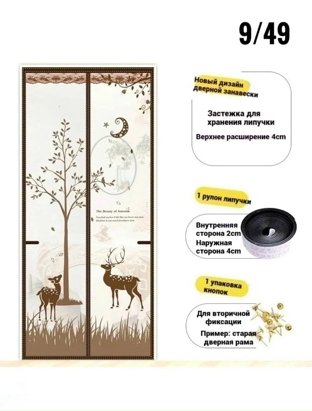 👉В комплект входят кнопки и двусторонний скотч для крепления к дверному проему. Так же в комплект входит верхний декоративный элемент (ламбрекен) из полиэстера. После прохода человека через дверной проем сетка полностью плотно смыкается, благодаря магнитам, расположенным вдоль всего полотна.👍
