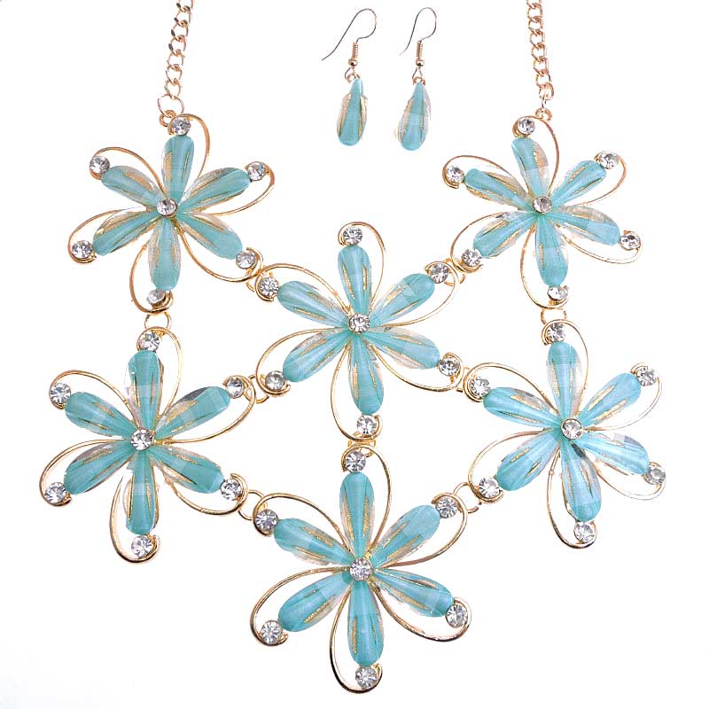 Комплект голубой с гальваническим покрытием под золото со стразами