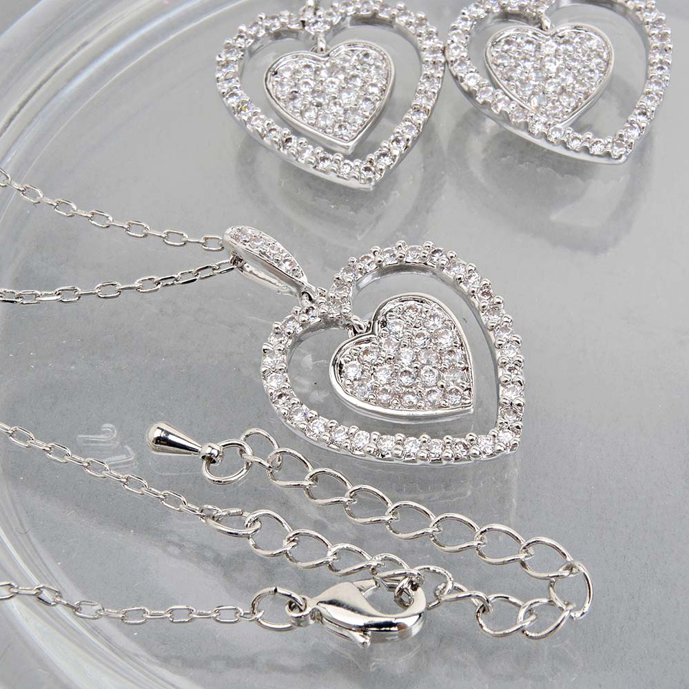 Размер: дл 40+5см, серьги 4*2см комплект-кулон,серьги(вставки-цирконы белые,покрытие-родирование), длина серег 4см,ширина 1.9см, размер кулона 3х1.9см