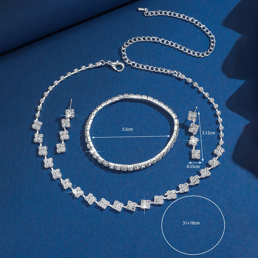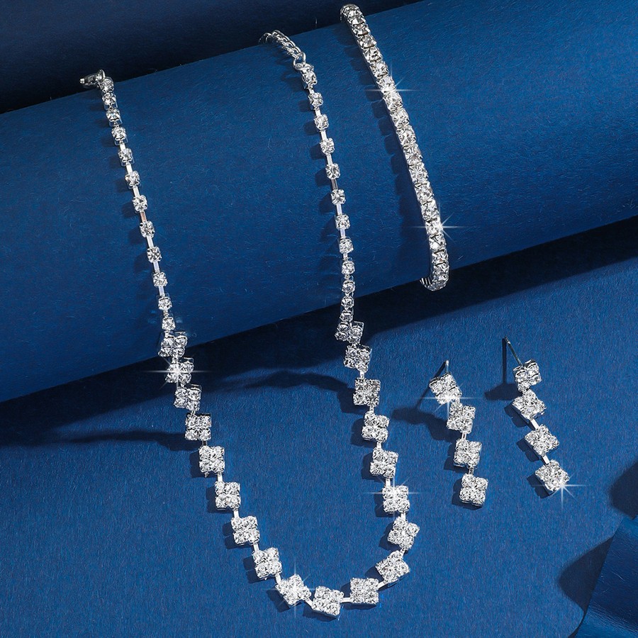 Комплект бижутерии вечерний: Колье, Серьги и Браслет. "Квадраты"