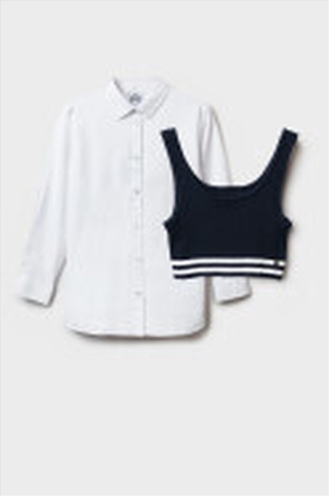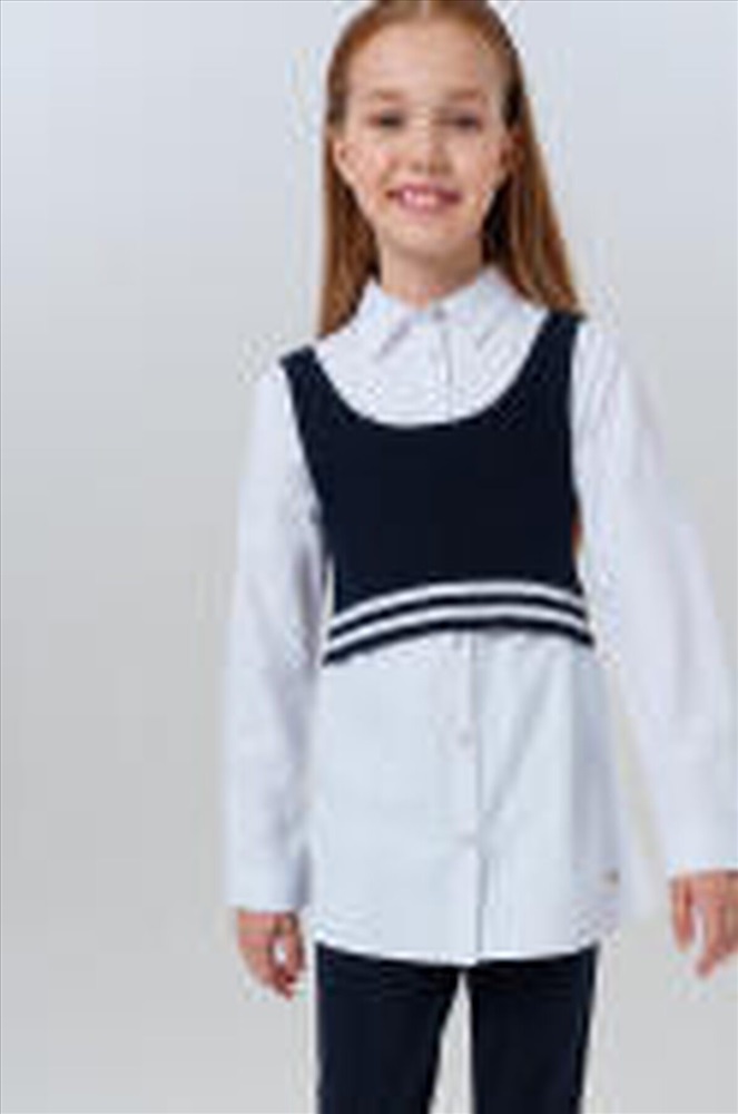 ID товара: 1131601 Состав: Блузка- 60% Хлопок, 40% Полиэстер; Жилет- 50% Вискоза, 50% Нейлон Сезон: Демисезон Длина: Средняя Фасон: Полуприлегающий Рукав: Длинные Вид застежки: Пуговицы Вырез горловины: Отложной воротничок Основная ткань: Хлопок Стиль: классический Страна бренда: Германия Страна производства: Китай Комплект из блузки и жилета для девочки подростка. Белая нарядная блузка для школы. Идеальный вариант на 1 сентября и для повседневной носки! Эта текстильная блузка сочетает нарядный дизайн и комфорт для учебы. Ключевые особенности: + Классическая белая текстильная блузка – создают праздничный образ + Удобная застежка на пуговицы – легко надевать самостоятельно + Посадка comfort – не сковывает движения во время занятий + Вязаный темно-синий жилет Почему стоит выбрать: Подходит как нарядный вариант на 1 сентября, так и для повседневной носки Удобный крой для девочки-школьницы и подростка. Комментарии к товару
