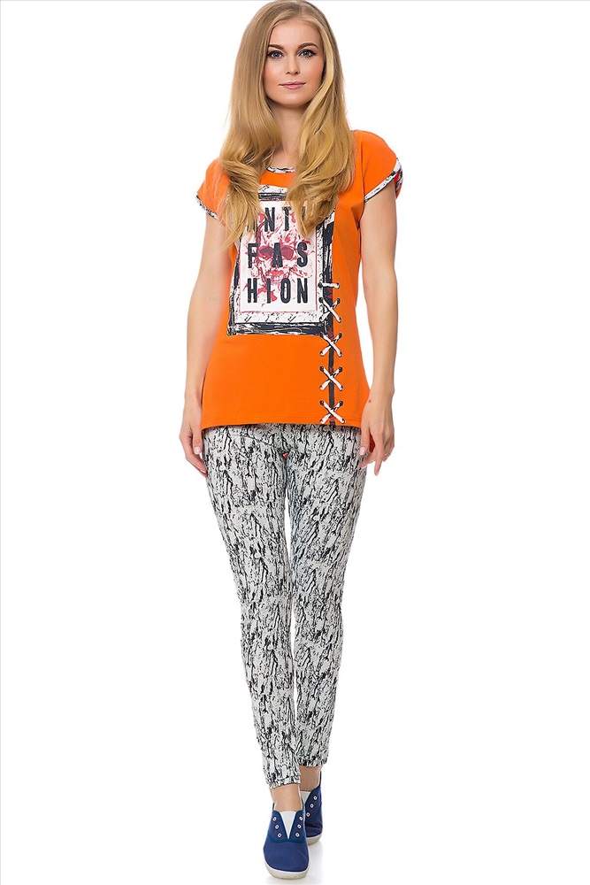 ID товара: 64338 Состав: Хлопок 90%, Полиэстер 10% Сезон: Весна/Лето Длина: Длинная, 75 см. по спинке, 80 см. по внутреннему шву Фасон: Прямой Рукав: Короткий, 10 см. по внешней стороне Вид застежки: Нет Страна бренда: Турция Страна производства: Турция Комплект из лосин облегающего силуэта и футболки с круглым вырезом горловины, удлиненной по спинке. Комментарии к товару
