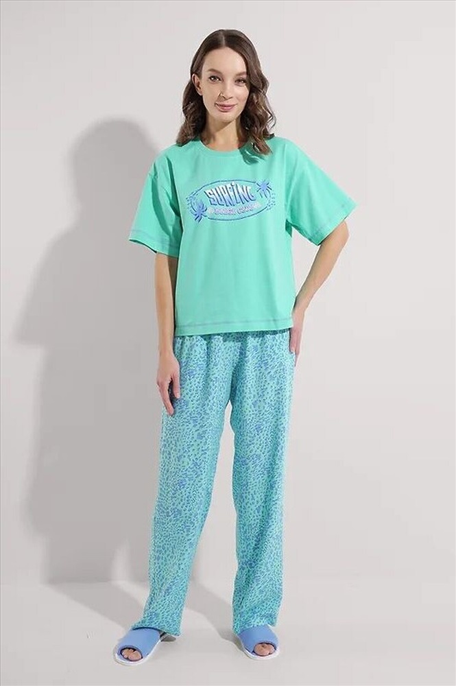 ID товара: 1122573 Состав: 100% Хлопок Сезон: Весна/Лето Длина: Средняя Фасон: Спортивный Рукав: Короткий Крой брючин: Прямой Вырез горловины: Округлый Основная ткань: Хлопок Стиль: Повседневный Страна бренда: Россия Страна производства: Россия Набор одежды для дома и отдыха. Футболка из трикотажного полотна, горловина с обтачкой.Короткий втачной рукав. Спереди принт,нашивка. По низу рукава и изделия застилы. Брюки из штапеля, на резинке и шнуром из окантовки. Боковые карманы с отрезным бочком. Комментарии к товару