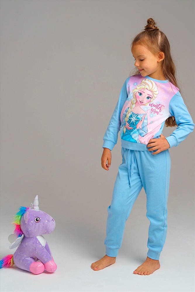 Комплект: лонгслив и брюки с принтом Холодное сердце приятная ткань с высоким содержанием хлопка благодаря наличию эластана в составе ткани, изделие проще в уходе и держит форму износостойкий принт горловина, манжеты, нижняя кромка брючин в эластичный рубчик.