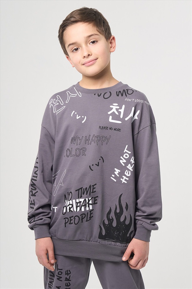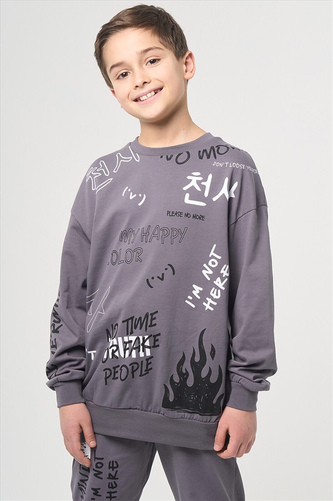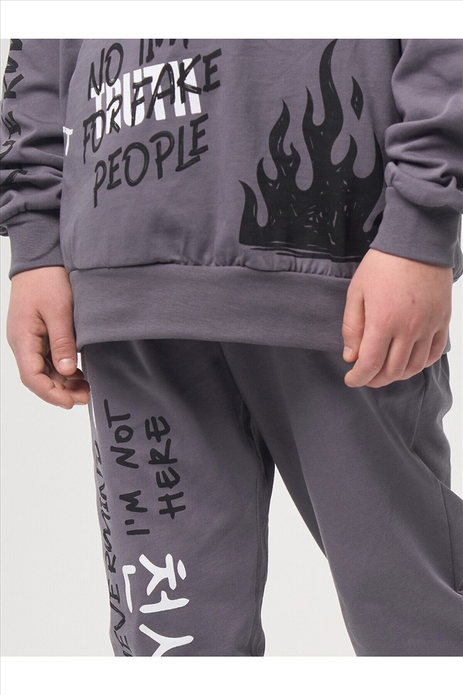 ID товара: 1104977 Состав: 100% Хлопок Сезон: Весна/Лето Длина: Средняя Фасон: Спортивный Рукав: Длинные Вид застежки: Без застежки Крой брючин: Зауженный Вырез горловины: Округлый Рисунок: Фантазийный Основная ткань: Хлопок Стиль: Спортивный Страна бренда: Россия Страна производства: Узбекистан Трикотажный комплект из свитшота и брюк с принтом в аниме стилистике. Костюм выполнен из 100% хлопка. Трикотажный свитшот оверсайз свободного кроя со спущенной линией плеча. Спереди контрастный принт в виде надписей. Круглый вырез горловины и длинный рукав. Горловина, манжеты и пояс с рельефной резинкой в полоску. Джоггеры свободного прямого кроя с зауженными к низу брючинами. Комфортная средняя посадка талии с эластичным поясом с кулиской. Функциональные прорезные карманы в боковых швах. Резинка по низу брючин. На правой брючине контрастный принт в виде надписей. Размерный ряд 116 – 176 см. Комментарии к товару