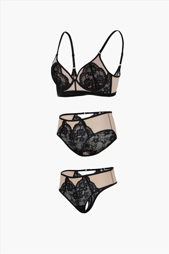 Кружевной бюстгальтер Indefini 1031WXY, изготовленный из полиамида, мягкий и эластичный. Черные кружевные вставки добавляют романтичности и элегантности. Косточки обеспечивают надежную поддержку и формируют привлекательный силуэт. Пояс корсетной формы удобно облегает фигуру. Регулируемые бретели позволяют настроить бюстгальтер под ваши предпочтения, обеспечивая комфорт на протяжении всего дня. Вставки из микросетки обеспечивают отличную воздухопроницаемость.