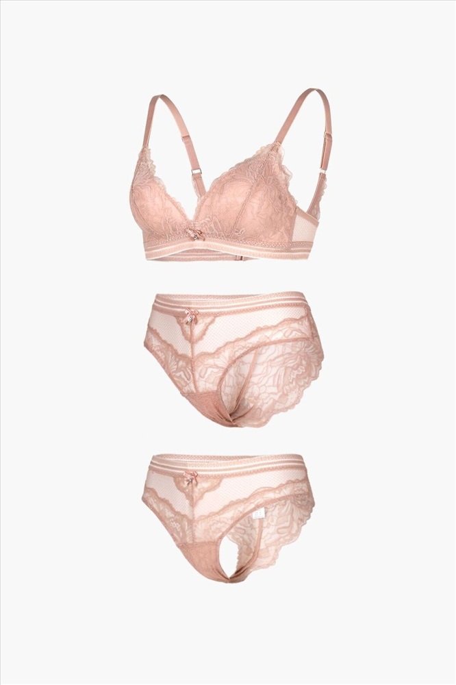 ID товара: 1193946 Акции: -2%, до 19.11.2025 Состав: 90% Полиамид 10% Эластан Сезон: Демисезон Основная ткань: Полиамид Модель трусов: Слипы, +Стринги Модель лифа/бюстгальтера: С плотной чашкой Страна бренда: Россия Страна производства: Китай Комплект нижнего белья от торговой марки Индефини. В комплекте бюстгальтер и две пары трусов. Бюстгальтер из полиамида, розового цвета, без косточек, без Push-up, с тонкой подкладкой, с кружевными вставками и обрамлением, на поясе из микросетки, на тонких регулируемых лямках. Трусы, стринги и слипы, из полиамида, розового цвета, из кружевной ткани, с обрамлением, со вставками из микросетки, средней посадки, на мягкой резинке. К бюстгальтеру идут трусы, размерами: 75B-S, 75C-M, 80B-M, 80C-L, 85B-XL. Комментарии к товару