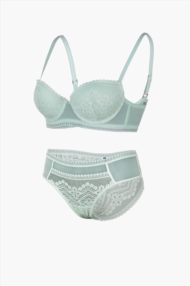 ID товара: 1213222 Акции: -2%, до 19.11.2025 Состав: 90% Полиамид 10% Эластан Сезон: Демисезон Основная ткань: Полиамид Модель трусов: Шортики Модель лифа/бюстгальтера: С плотной чашкой Страна бренда: Россия Страна производства: Китай Комплект нижнего белья от торговой марки Индефини. В комплекте бюстгальтер и трусики. Бюстгальтер мятного цвета выполнен из кружевной ткани с микросеткой, с формованными чашками без Push-up, в поддержку груди оснащен косточками на чашках и по бокам. Комфортную посадку обеспечивают регулируемые бретели и застежки-крючки на поясе. Мятные трусы-слипы выполнены из кружевной ткани с микросеткой, дополнены кружевом с цветочным принтом, средней посадки. К бюстгальтеру идут трусики, размерами: 75B-S, 75C-M, 75D-L, 80B-M, 80C-L, 80D-XL, 85B-XL, 85C-XL. Комментарии к товару