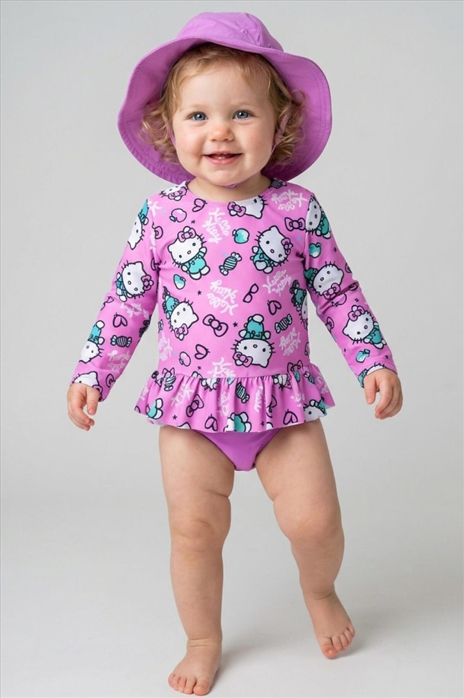 ID товара: 1243978 Состав: Плавательный костюм- 85% полиэстер, 15% эластан, Панама- 100% хлопок Сезон: Весна/Лето Модель купальника: Закрытый Страна бренда: Германия Страна производства: Китай Комплект купальный детский для девочки: футболка с длинными рукавами, плавки и панама. Лонгслив имеет свободный крой и украшен оборкой по низу. Яркий розовый фон дополнен весёлым принтом Hello Kitty. Панама выполнена в том же стиле и защищает голову от солнца, дополнена удобными завязками. Все края обработаны эластичной тесьмой, чтобы изделие хорошо сидело на теле и не натирало. Благодаря UF-защите, ткань сохраняет первоначальный вид даже при длительном пребывании на солнце. Он идеально подходит для пляжа или бассейна. Комментарии к товару