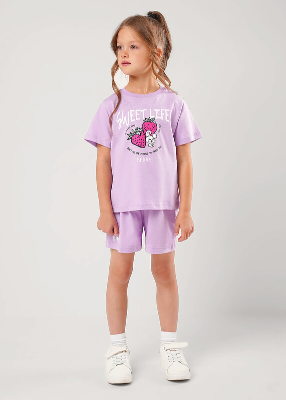 Производитель: Clever Комплект из футбоки и шорт для девочки. Футболка из 100% хлопка, украшена милым принтом!Стильные базовые шорты из натурального трикотажного полотна отлично подойдут для занятий спортом и повседневной носки.
