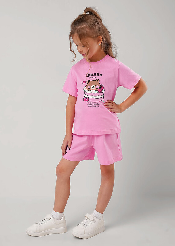 Комплект из футбоки и шорт для девочки. Футболка из 100% хлопка, украшена милым принтом!Стильные базовые шорты из натурального трикотажного полотна отлично подойдут для занятий спортом и повседневной носки.