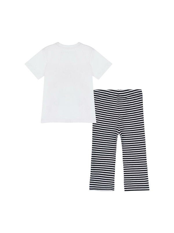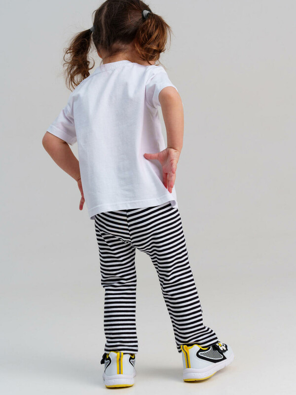 Костюм детский для девочки. Футболка и леггинсы классической посадки. Костюм из качественного и приятного на ощупь трикотажа джерси с высоким содержанием хлопка 95%. Благодаря наличию эластана в составе ткани изделие проще в уходе и держит форму. Футболка с застежкой на кнопки. Леггинсы на резинке. Модель выполнена из качественного и приятного на ощупь трикотажа.
