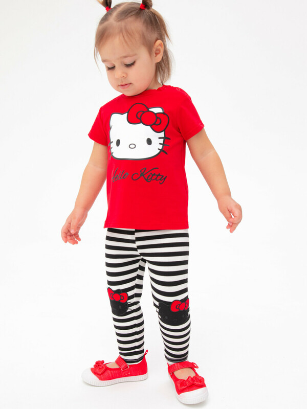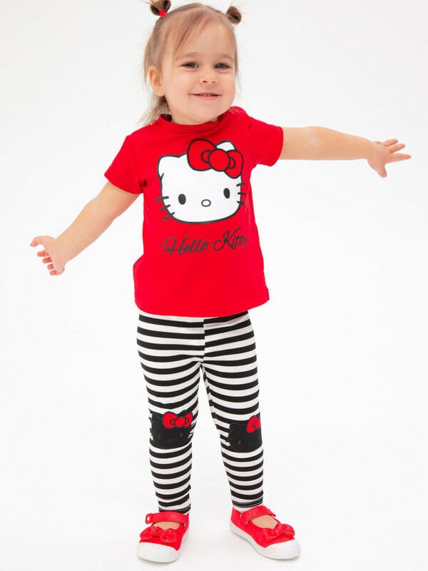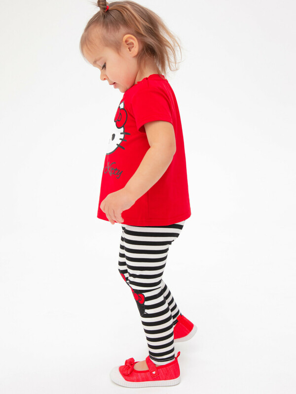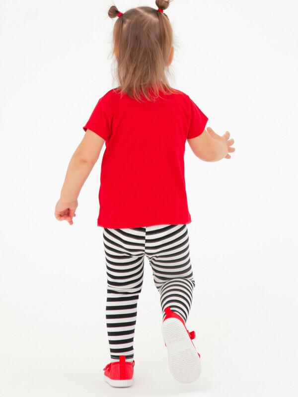 Комплект: футболка и легинсы из качественного эластичного и приятного на ощупь трикотажа. Посадка regular fit – классический крой. Застежка на кнопки на плече. Эластичный пояс. Высокое содержание хлопка 95%. Благодаря наличию эластана в составе ткани изделие держит форму и меньше мнется.
